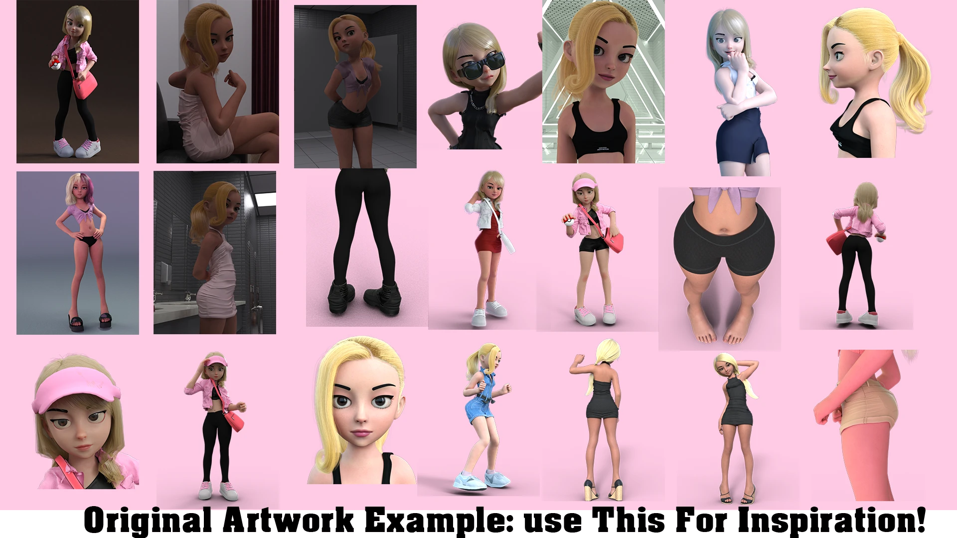 GG is a special character for me! She represents my growth as an artist and my improvement over time. Even though I am an artist I believe AI is super cool and allows me to share my creation with others. I have been doing 3D for about 10 years. Please enjoy using her.