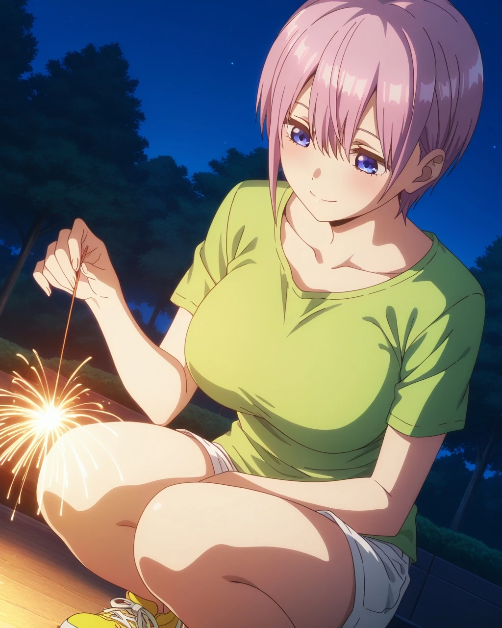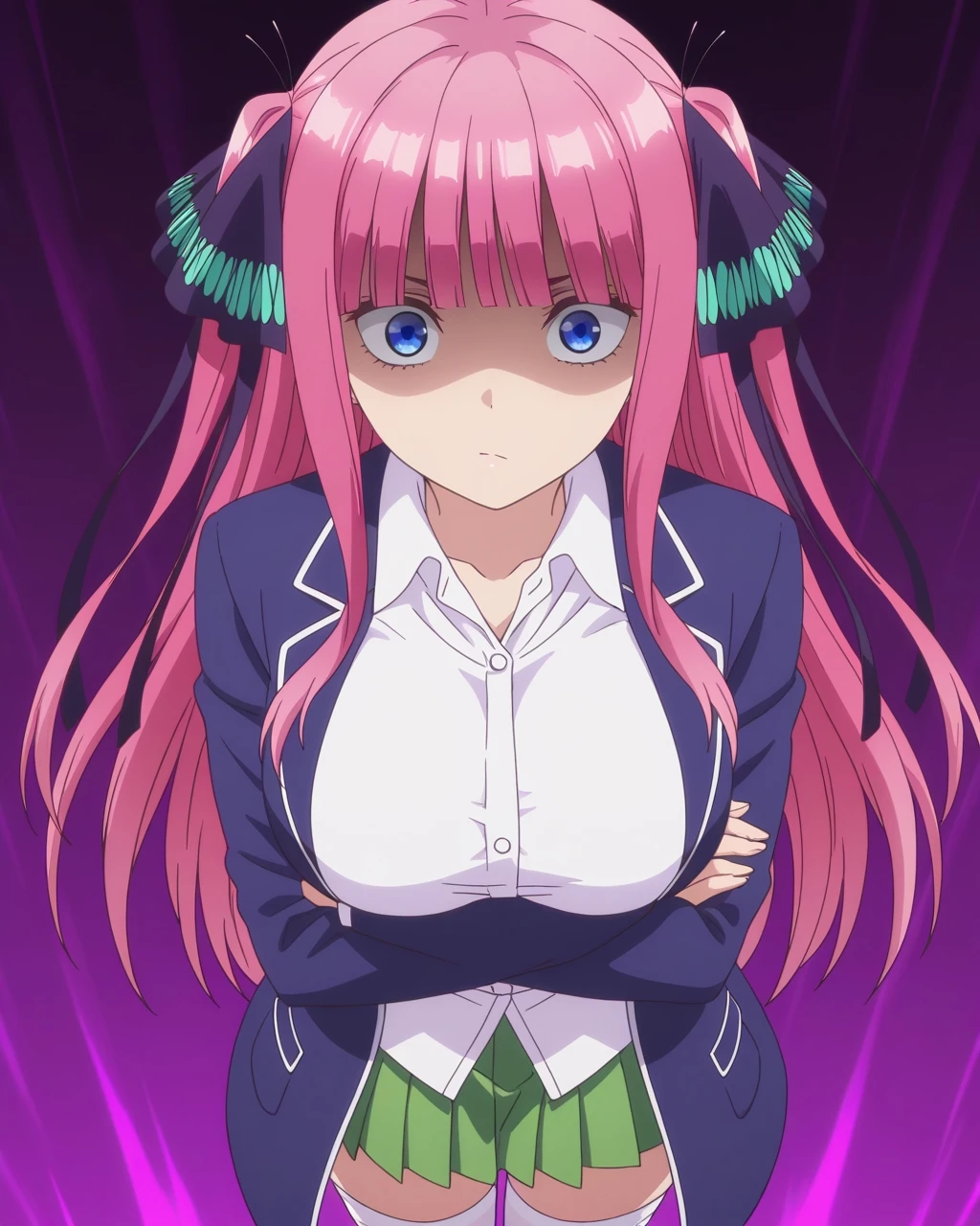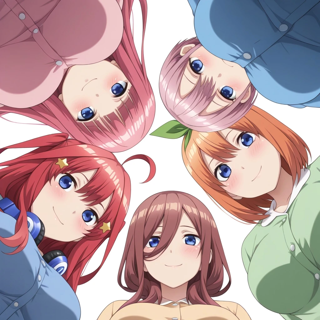 This is one of my tries to make a multicharacter LoRA. This includes all of the Nakano sisters from Go-toubun no Hanayome from the first season. It trained with over 150 images (more or less) for each one and including also group shots with them to try group pictures (which unfortunately isn't perfect as it mix hair colors and mix or lacks accesories of each character).