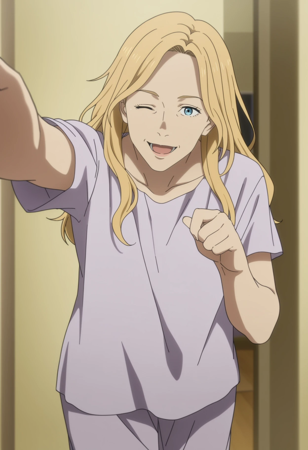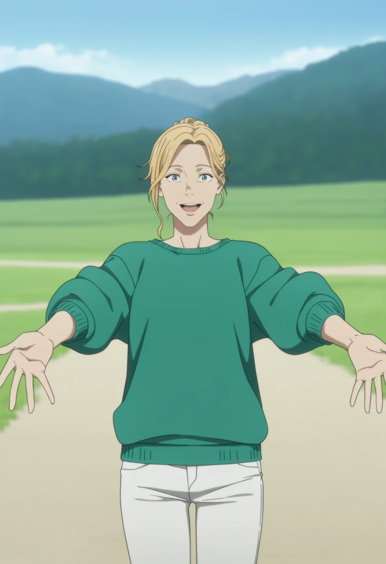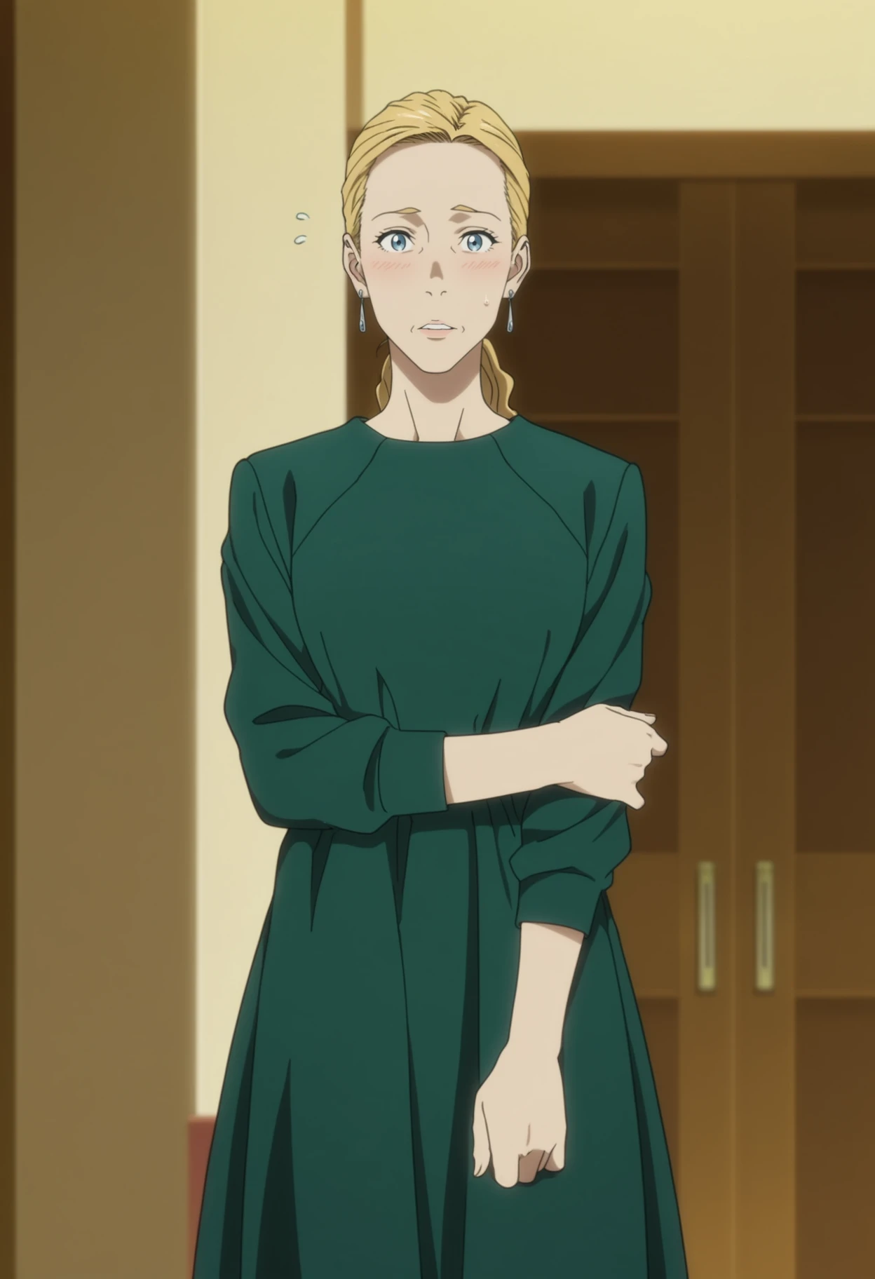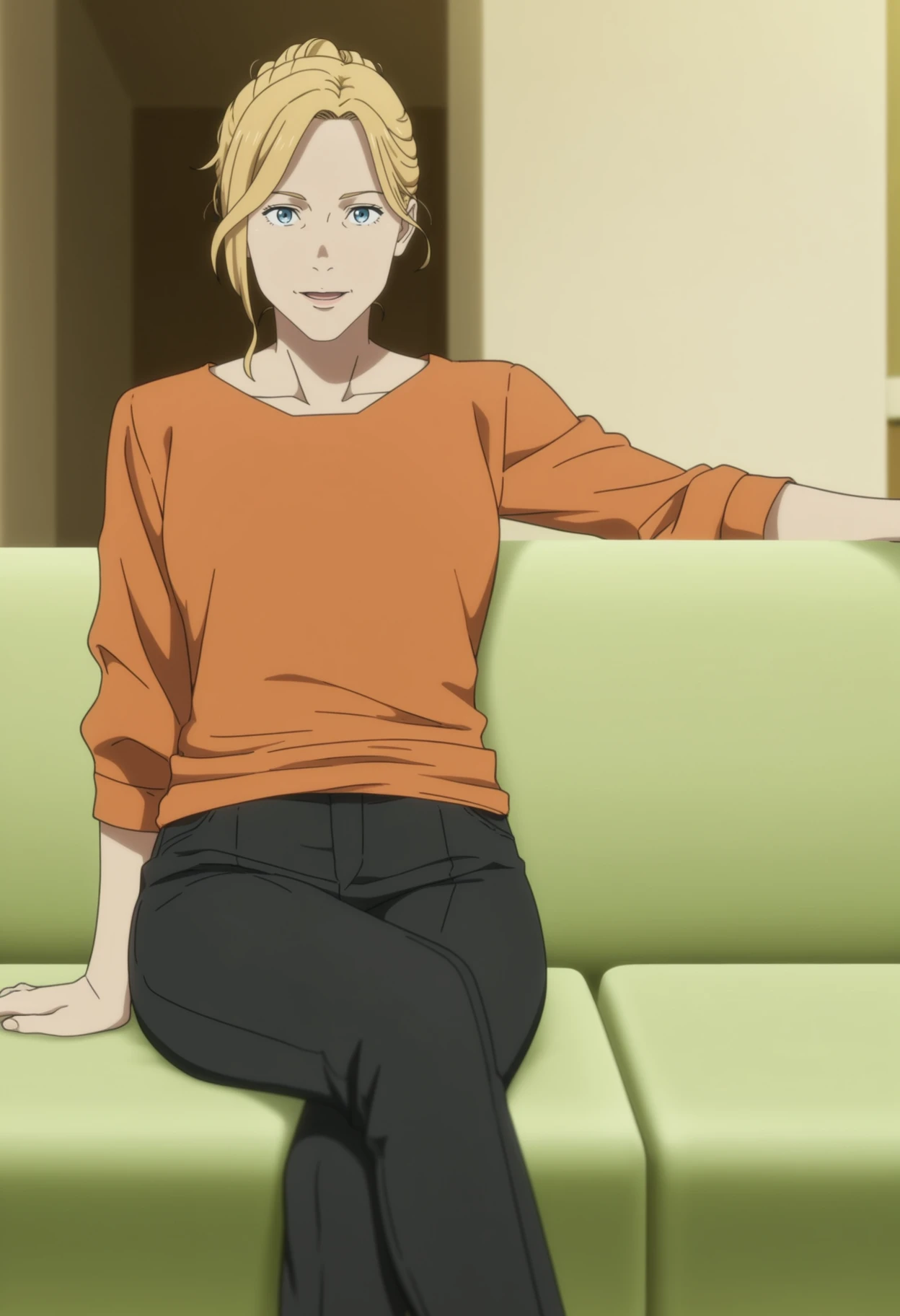 1girl,solo,anime coloring,mm,blonde hair,blue eyes,single hair bun,hair bun