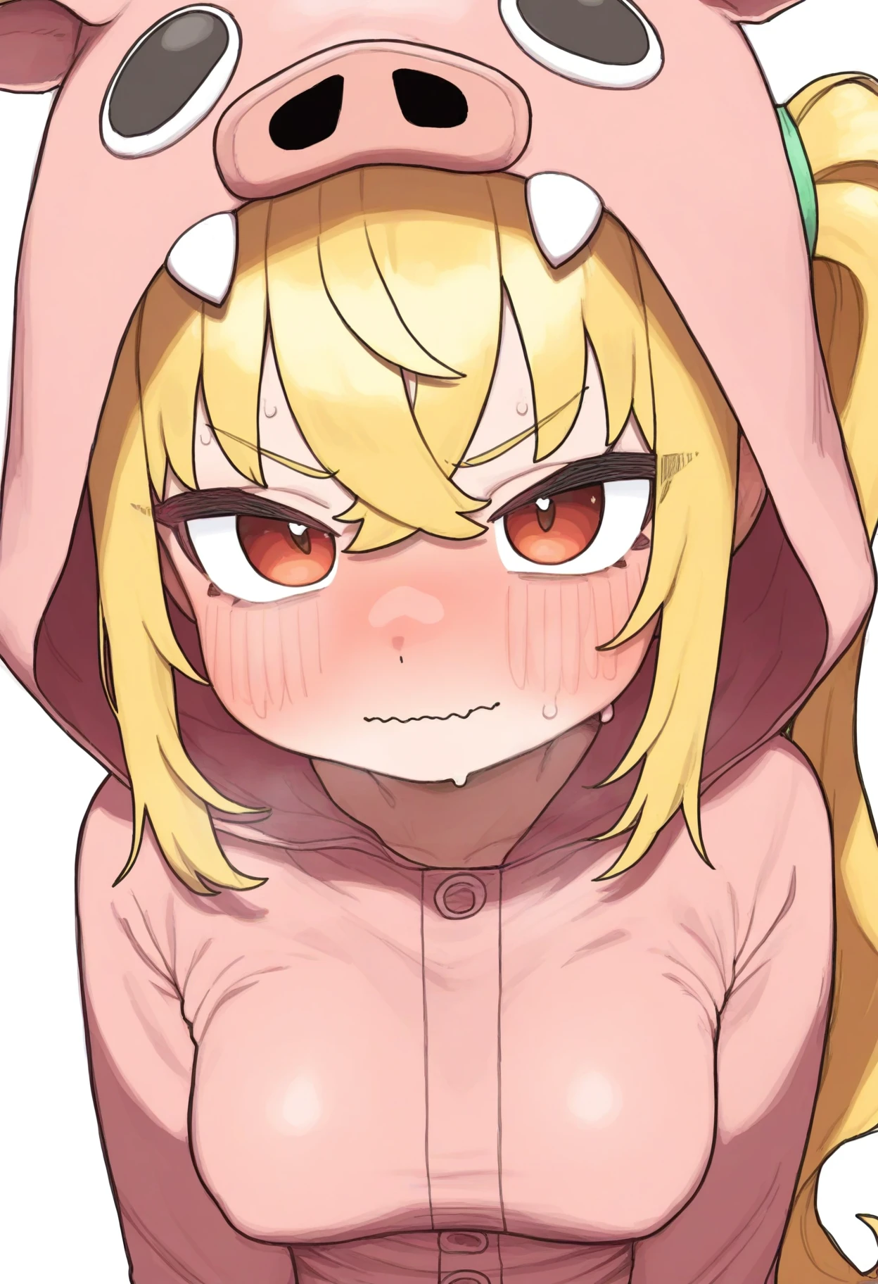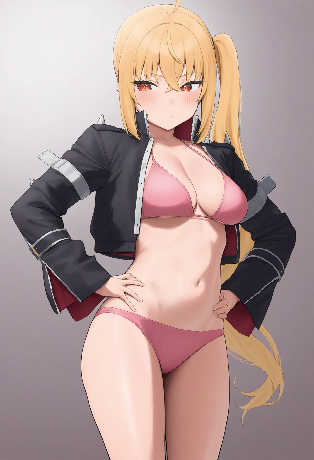 1girl, imluciana, blonde hair, red eyes, long hair, side ponytail,Outfit: