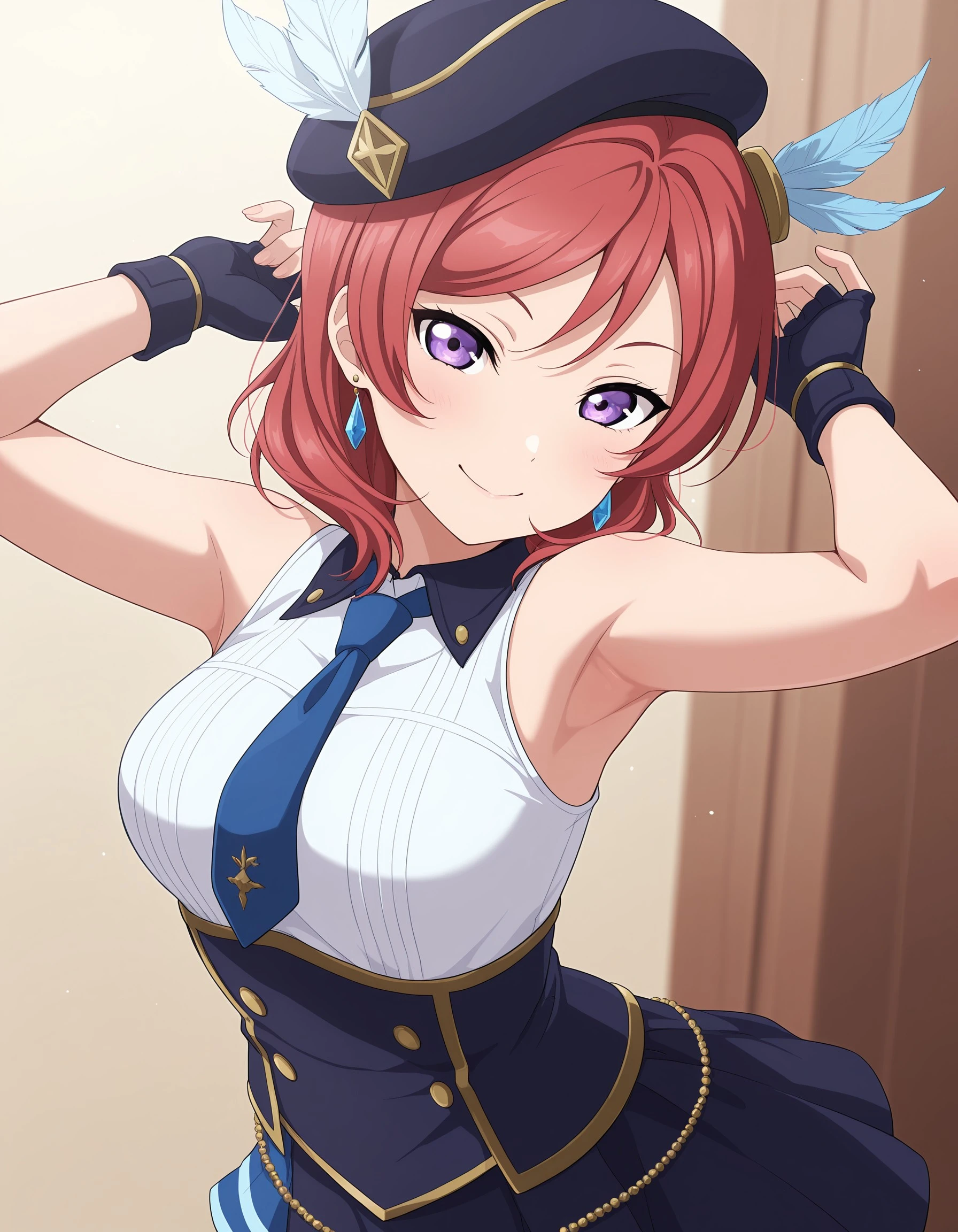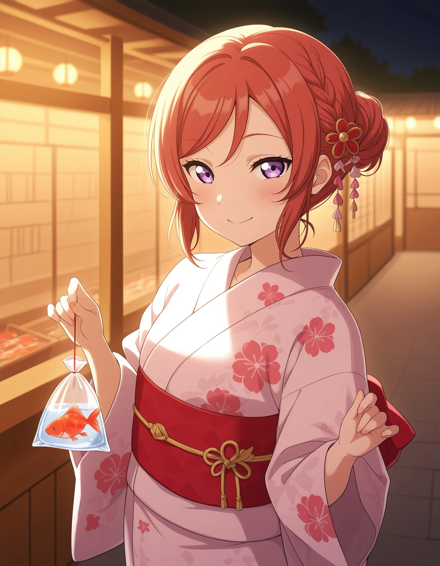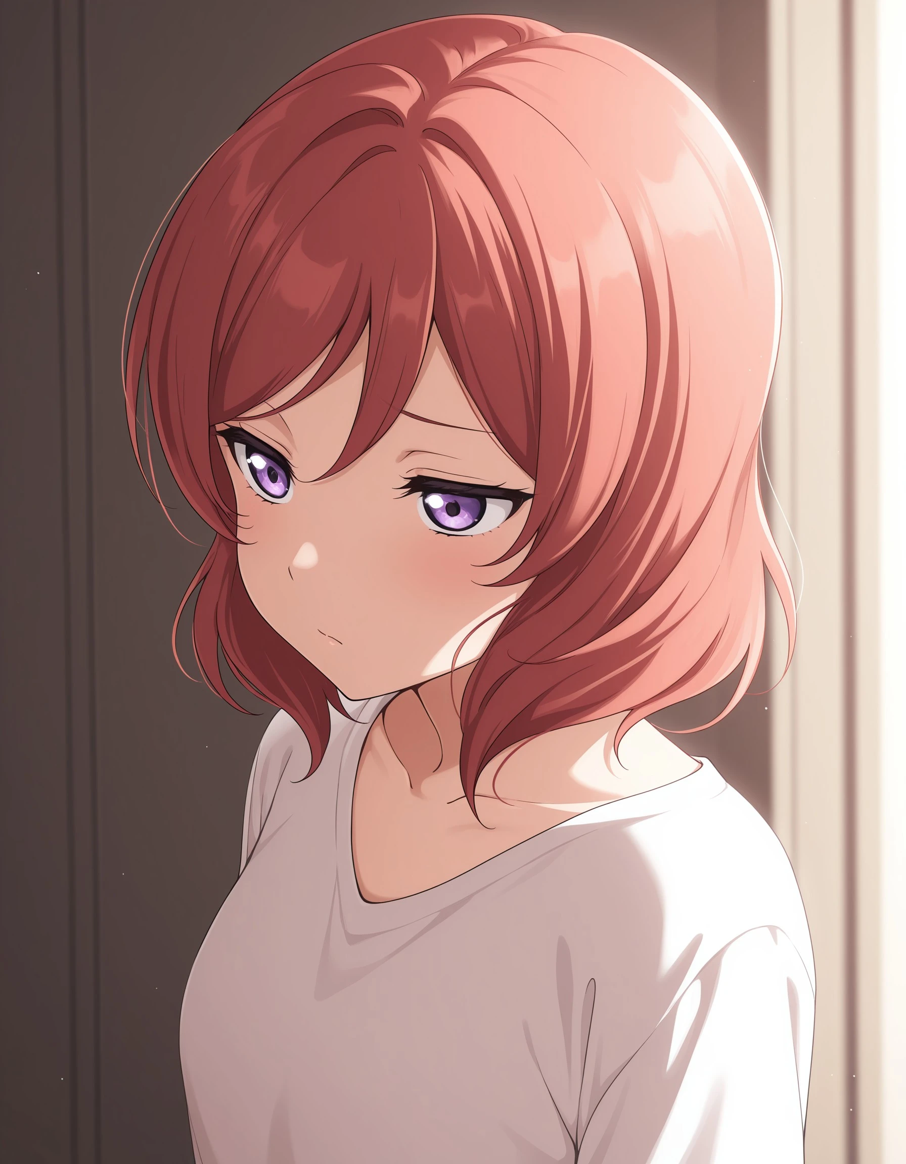 mknskn, red hair, purple eyes, short hair