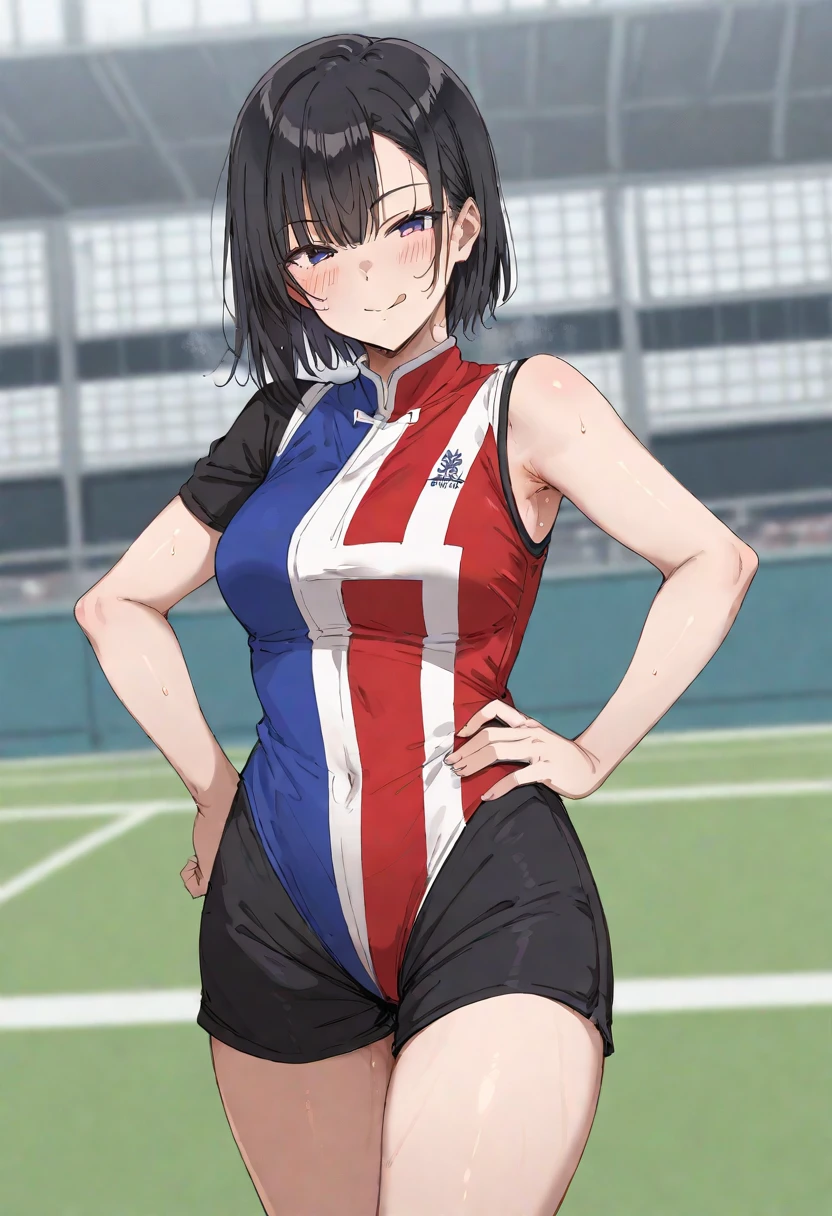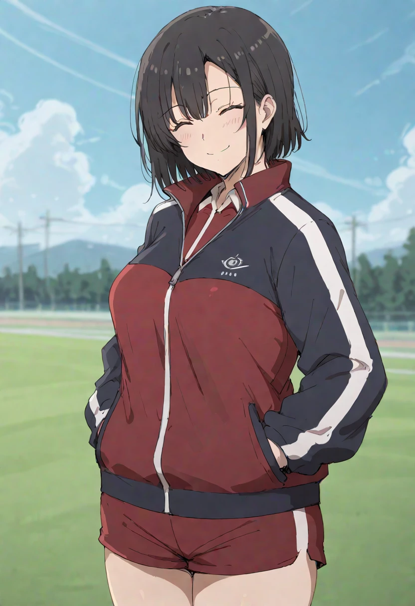 other outfit:track jacket,red shorts,white polo shirt,dolphin shorts