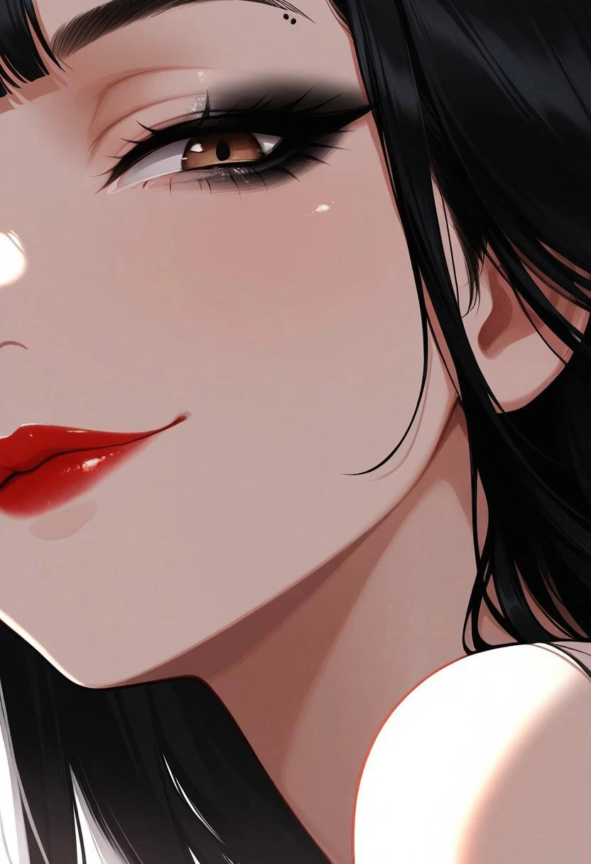 1girl, Saiko, japanese, long hair, fringe, black hair, brown eyes, red lips, sexy body