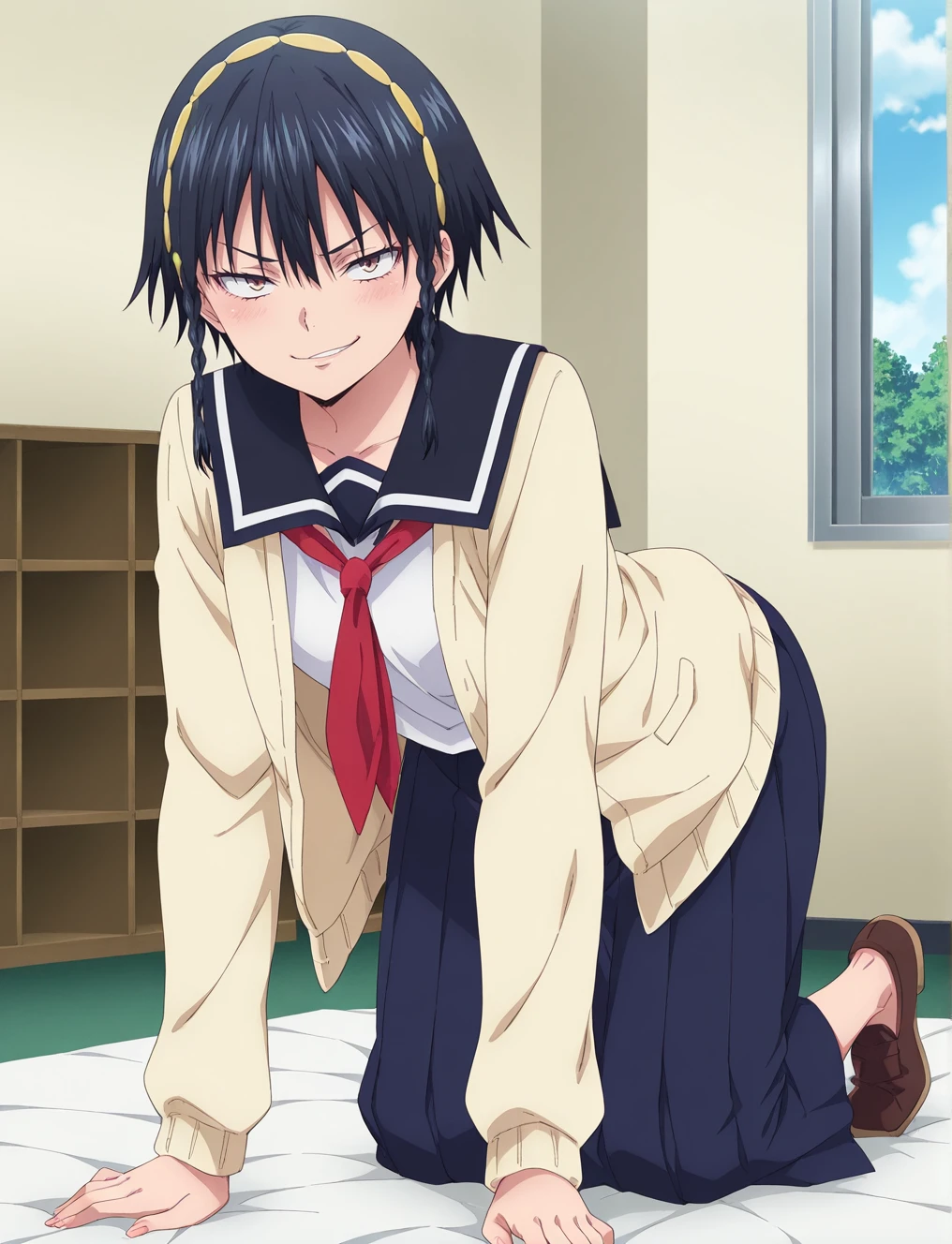 tobera azuma (mato seihei no slave), 1girl, short hair, twin braids, black hair