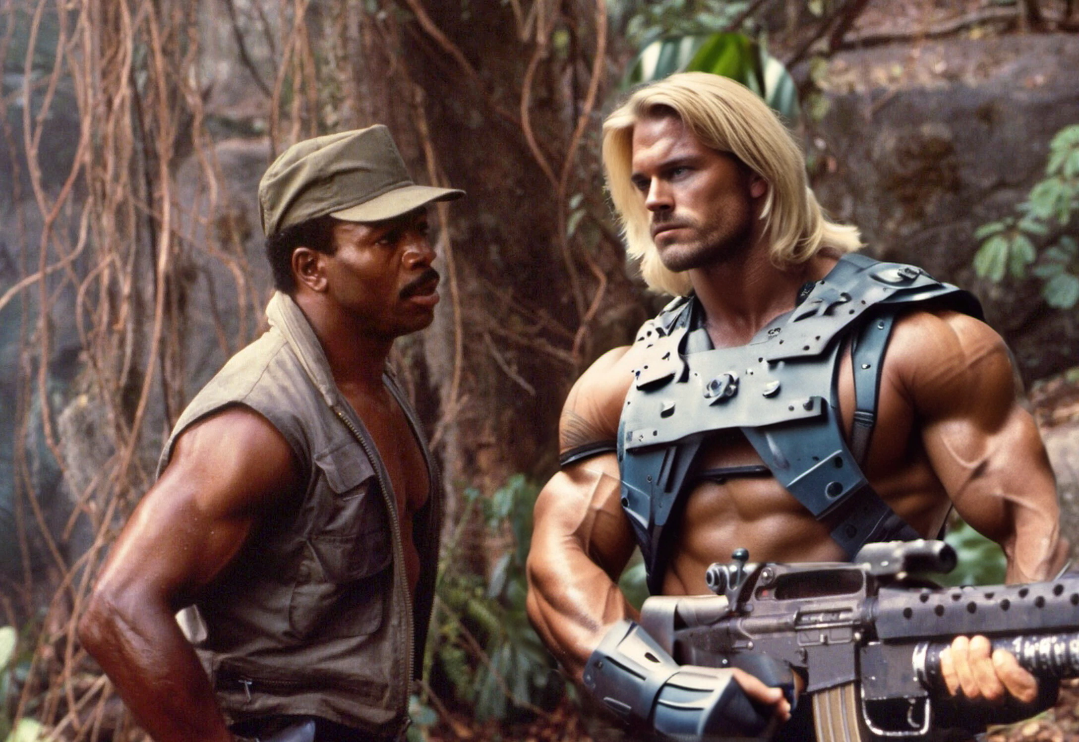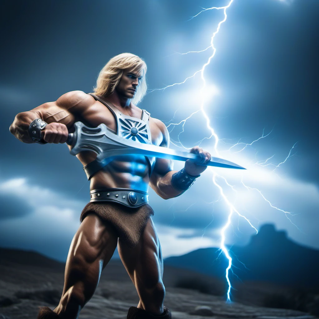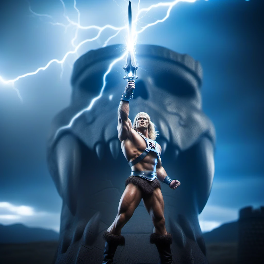 muscular man, blond long hair, blue eyes, boots, manly, armor