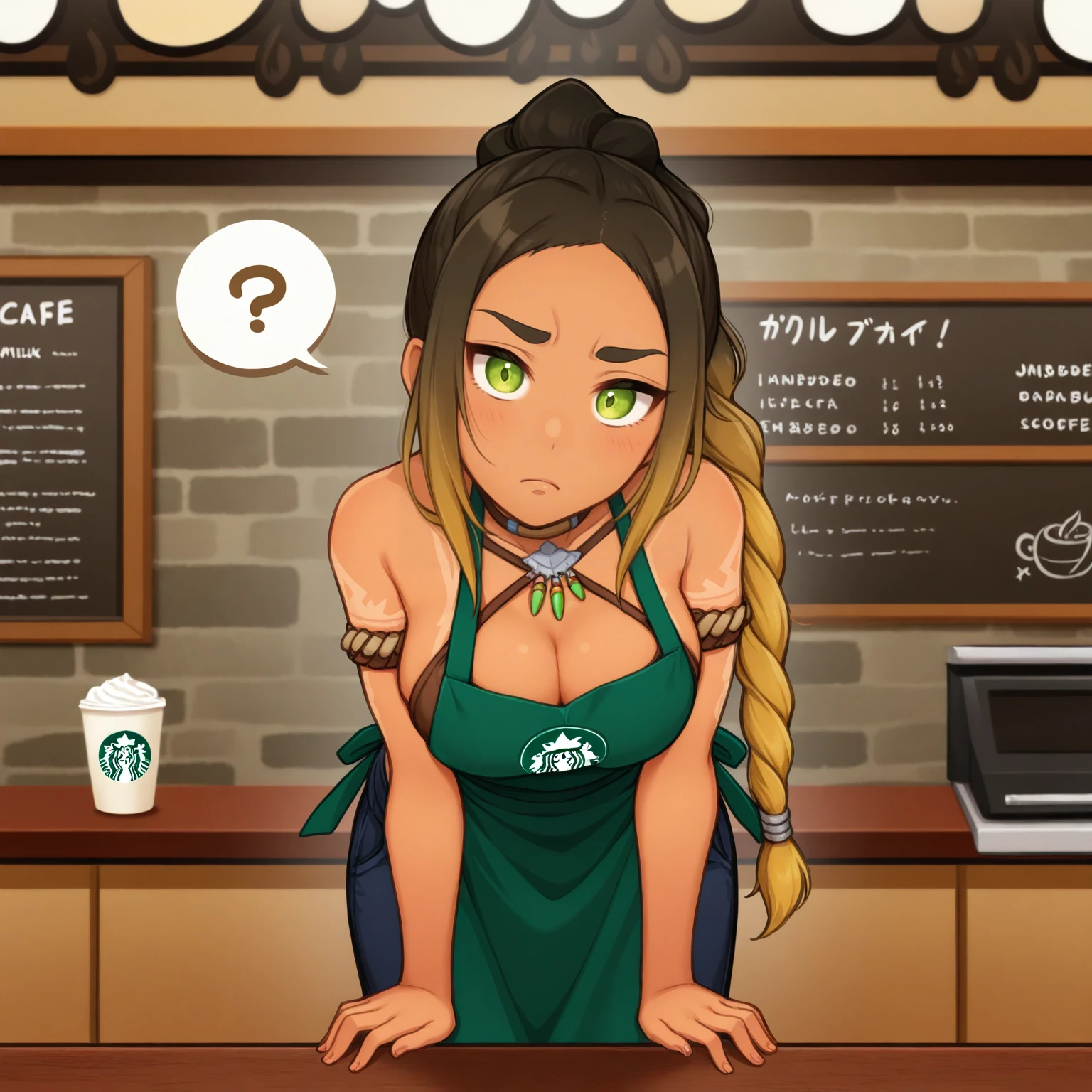 Her tattoos are not tagged separately, so they should always appear, though you can always reinforce with tattoo or tribal tattoo if necesary.