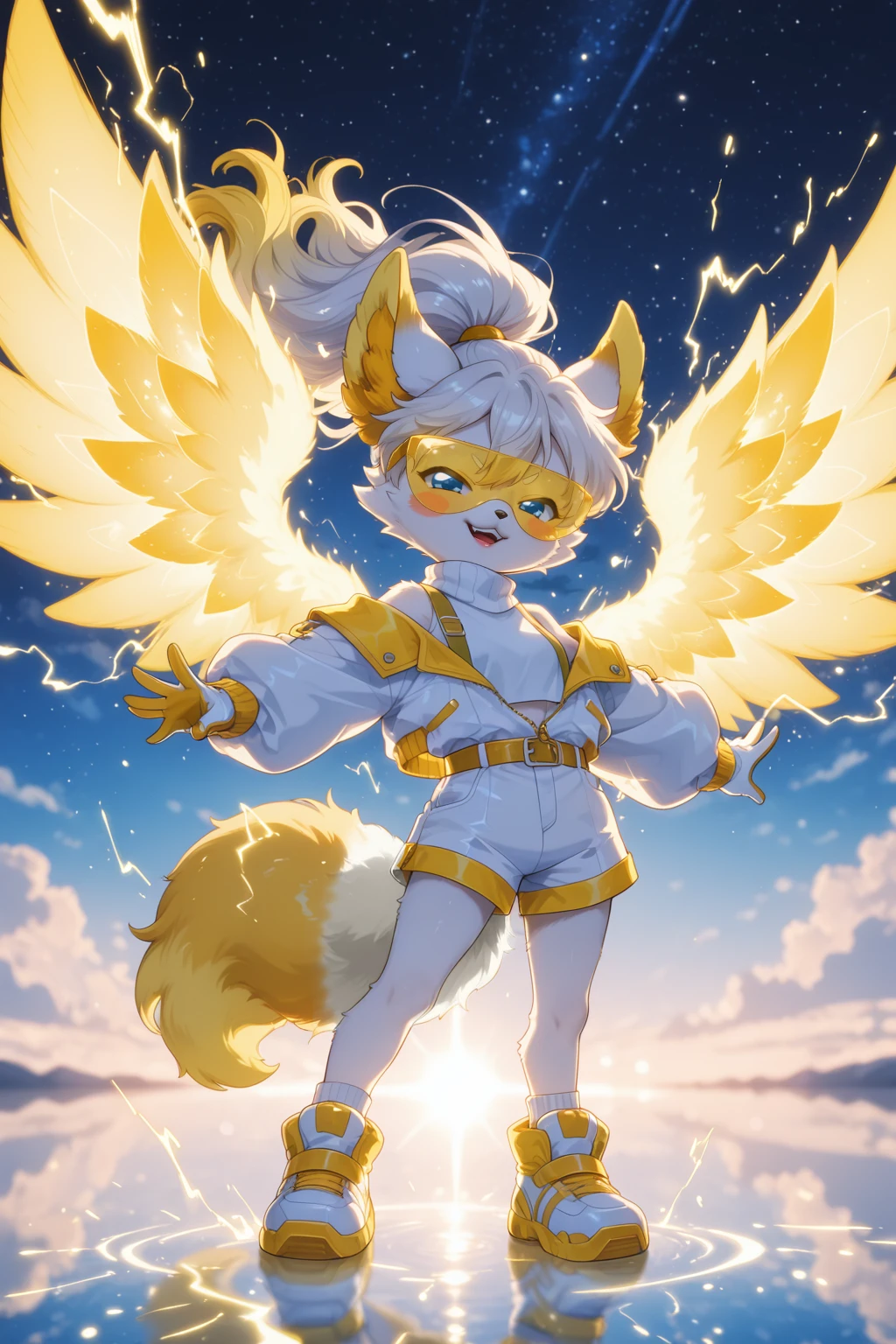 fox, white fur, two-tone fur, yellow fur, blue eyes, mini wings