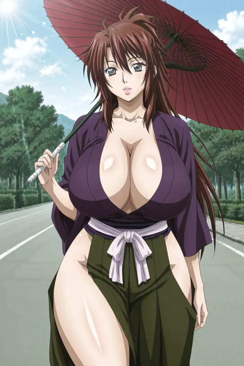 1girl, Yasha Manyuu (Manyuu Hikenchou), brown_hair, long hair, black_eyes, lips, glossy lips, thick lips, massive breasts, Manyuu Hikenchou_art_style, 4k, HD, excellent quality, high-resolution, clear animation