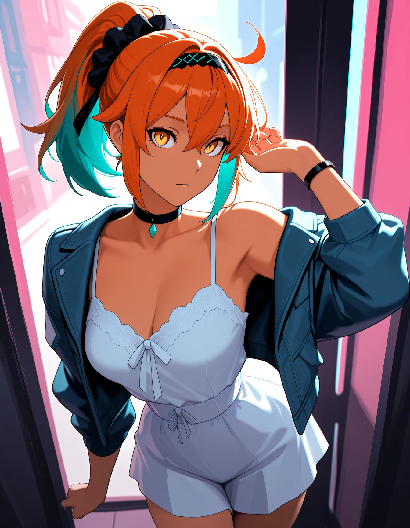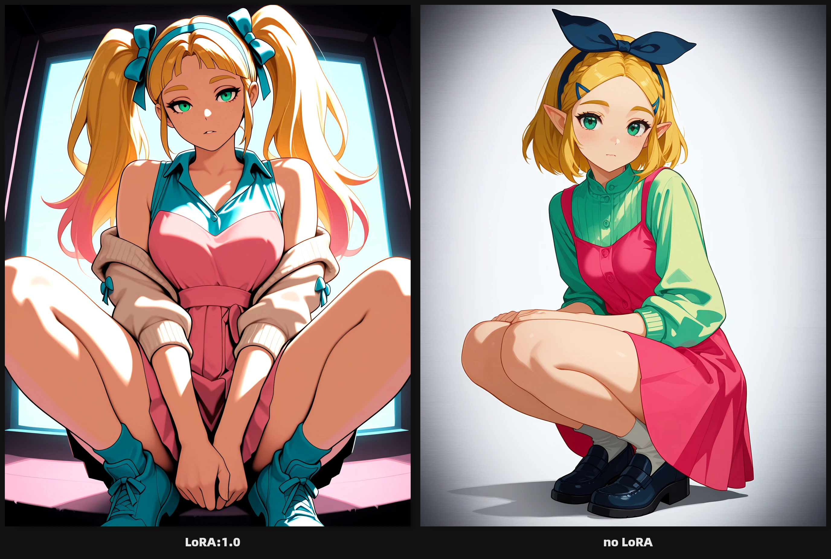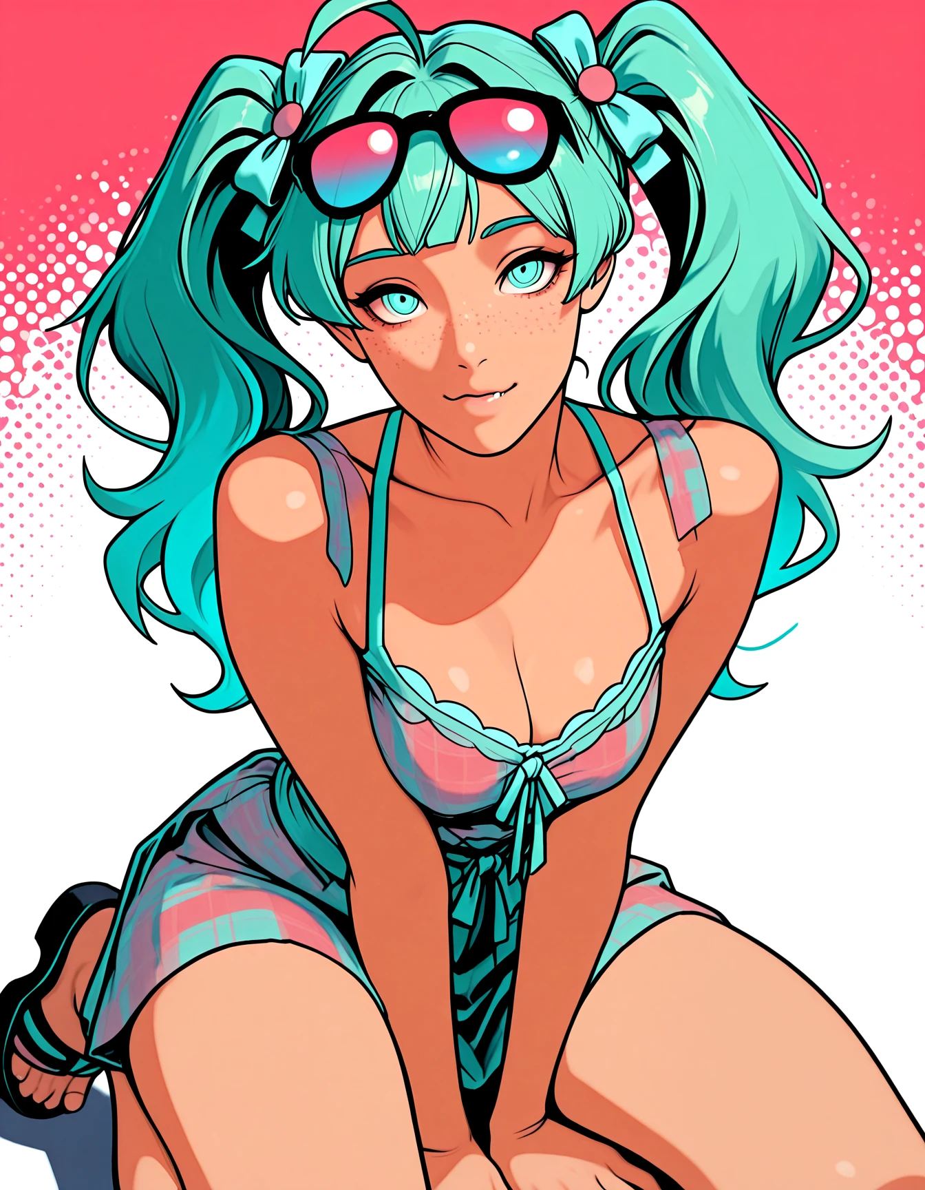 (by dilbert), (by helltaker:0.9), (neon palette, foreshortening, halftone_background:0.8) and many different backgrounds..