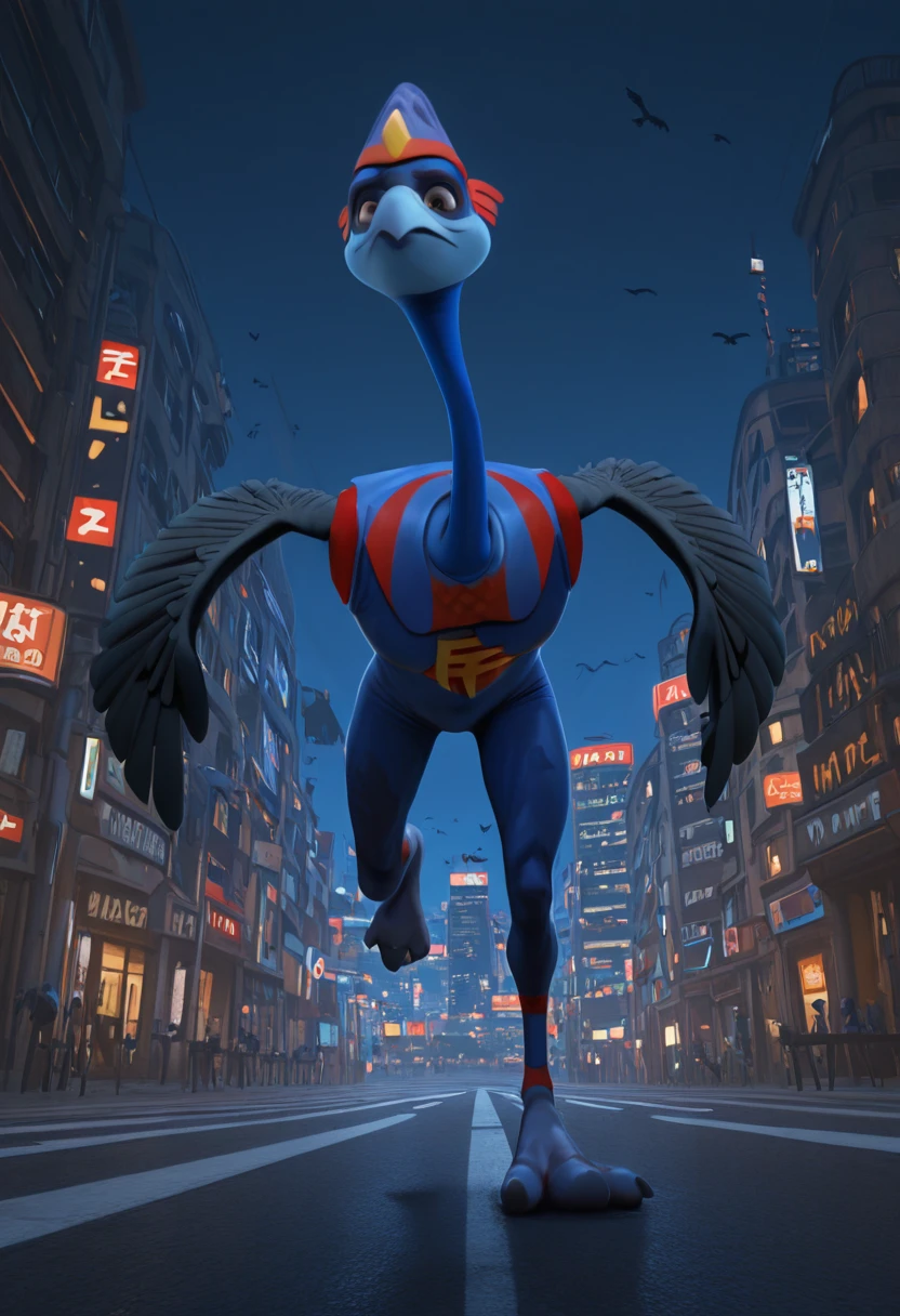 CWFlightless, furry, bird, cassowary, beak, blue body, black wings, winged arms, long neck, blue , blue headwear, sleeveless