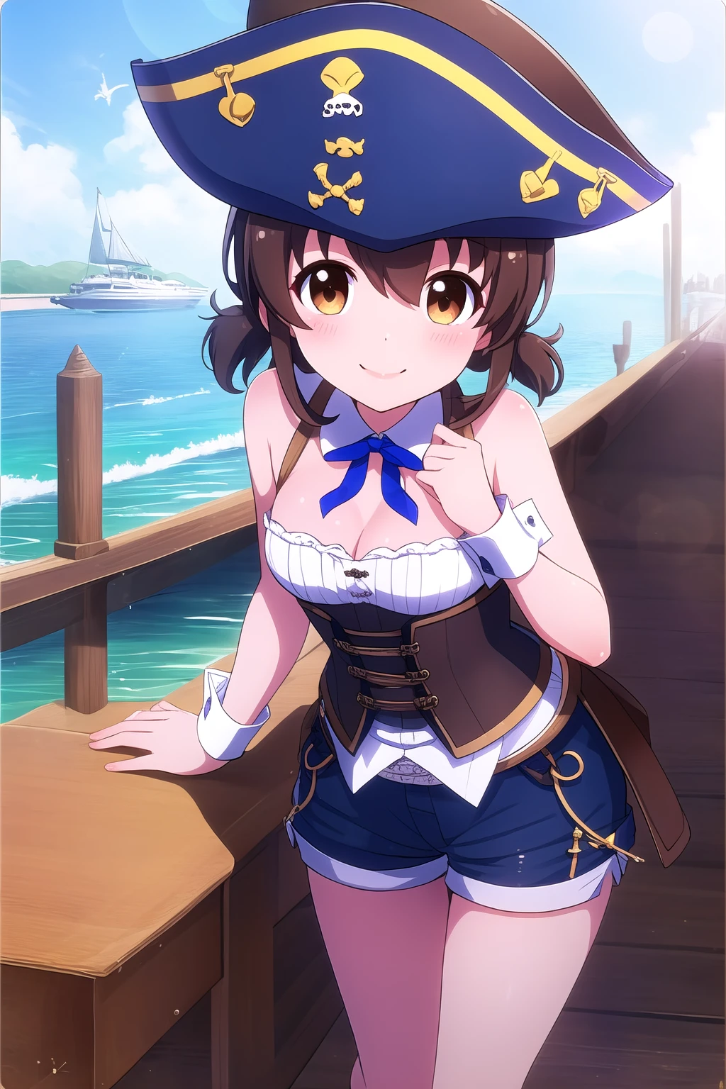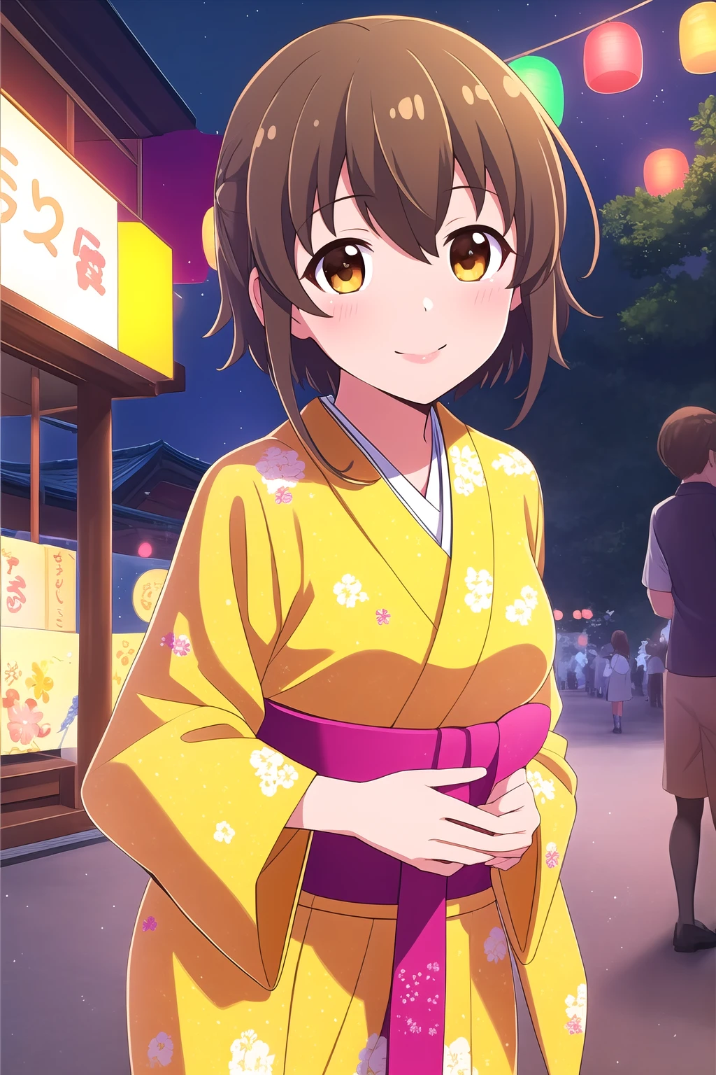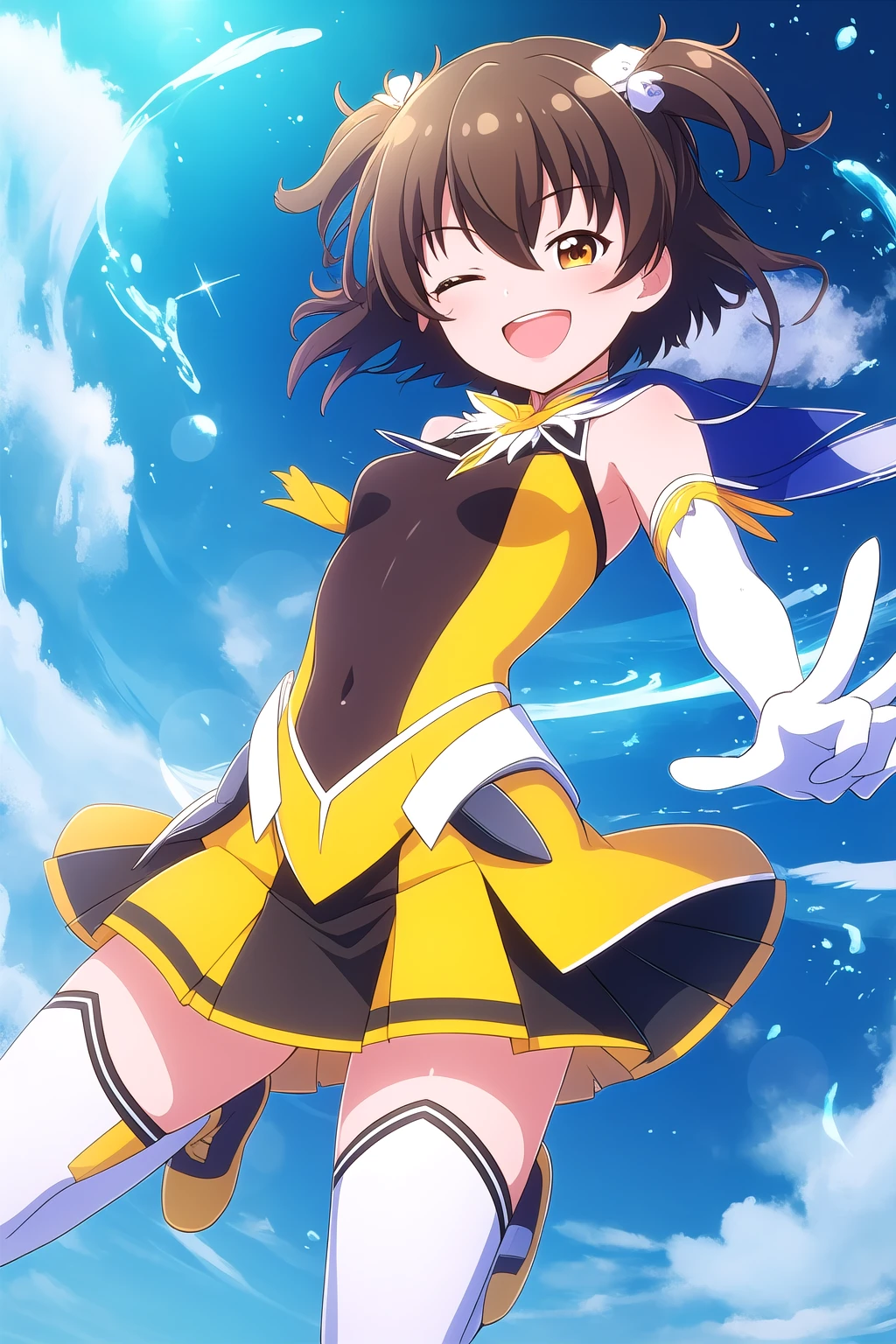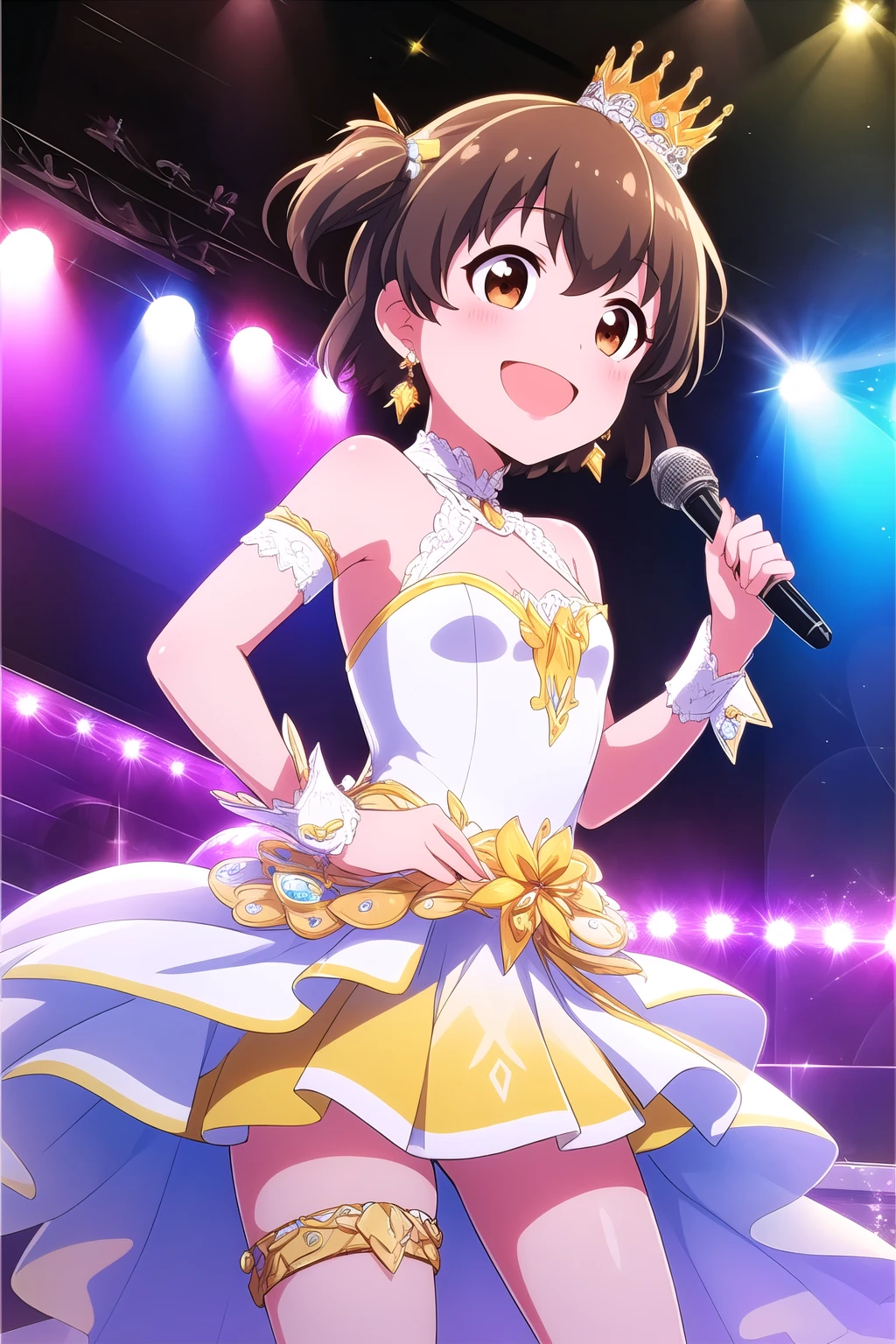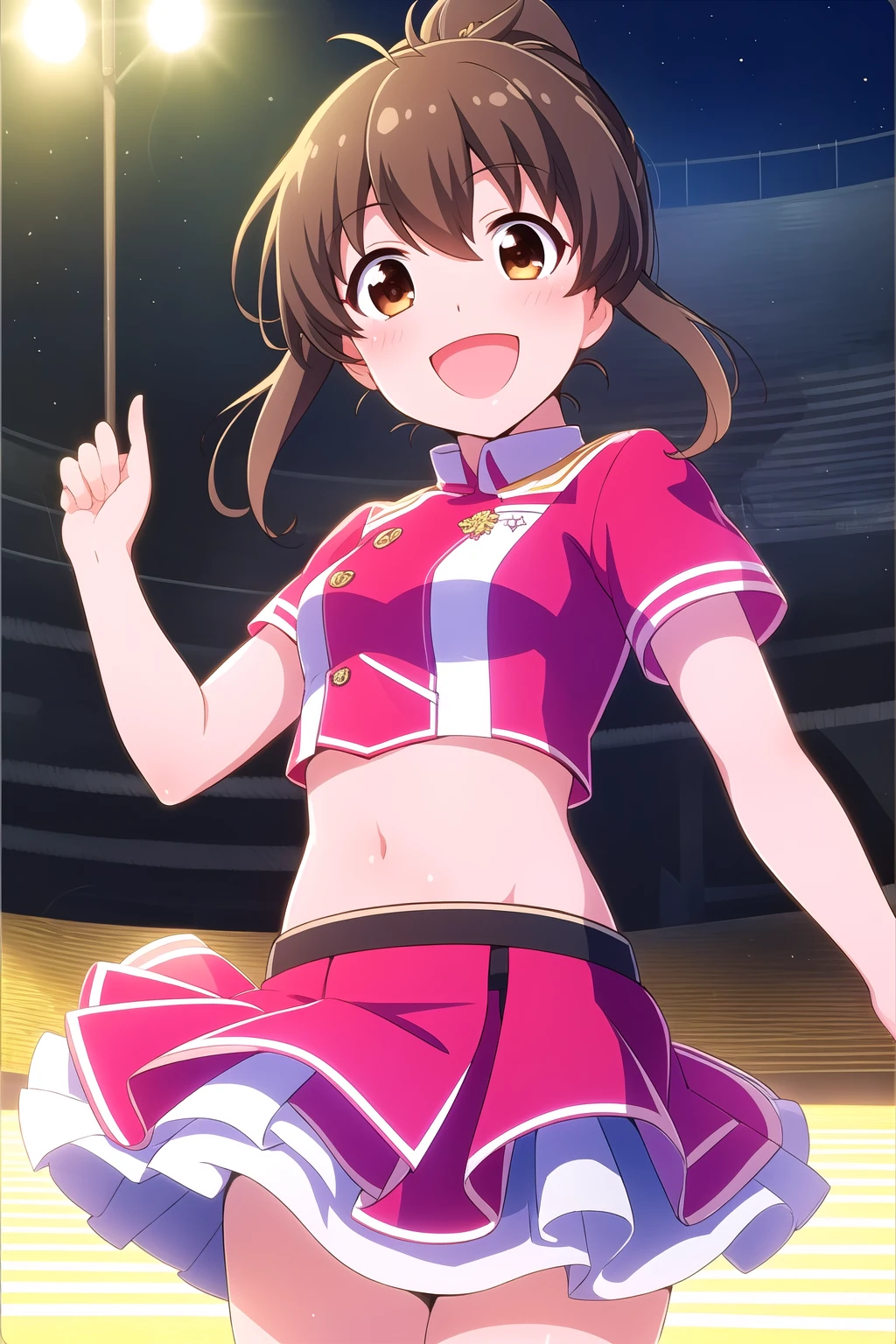 brown hair, two side up, hair ornament, hair between eyes, short hair, brown eyes