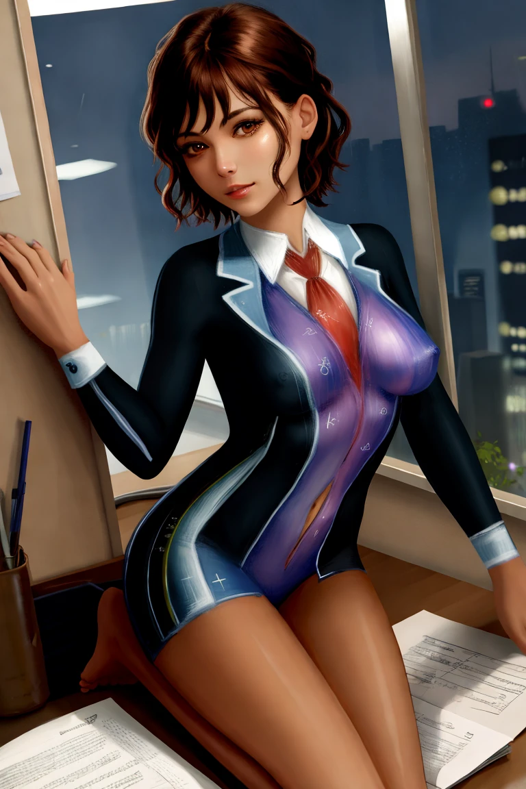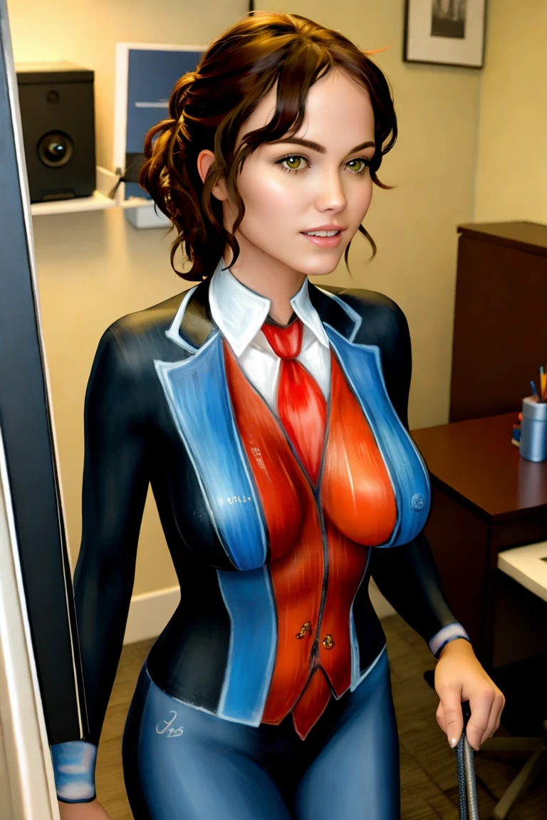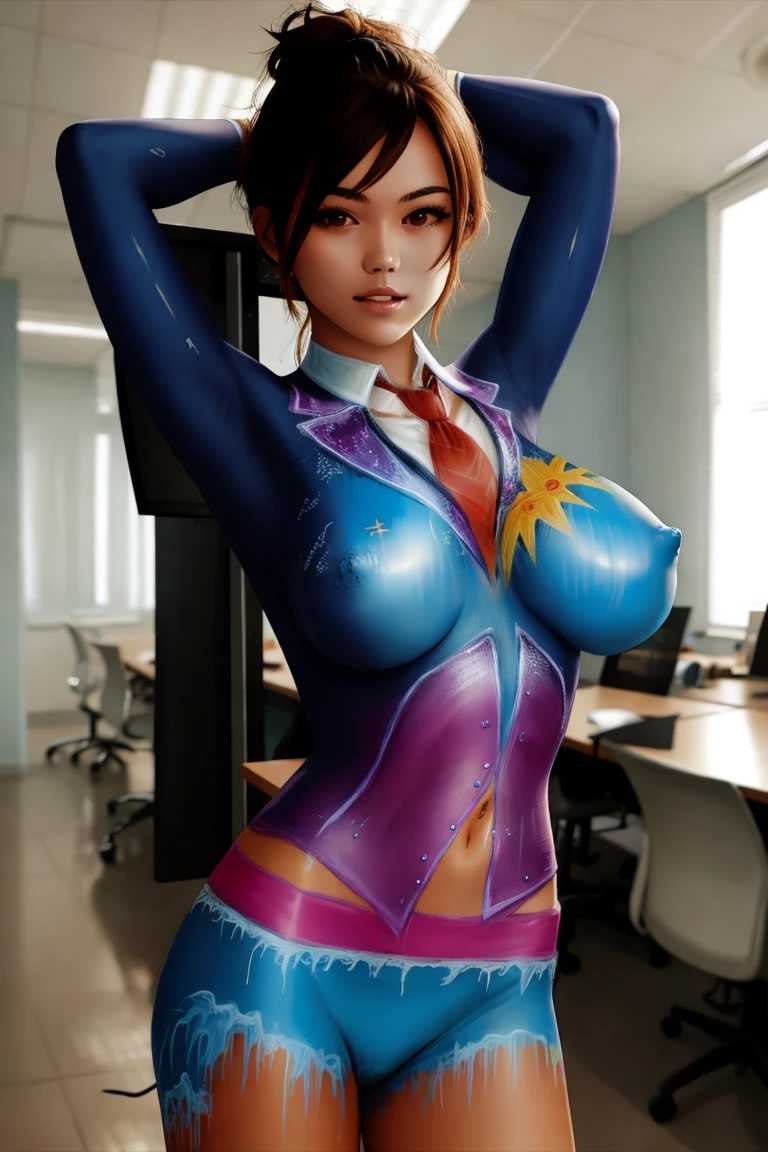 (((Ultra-HD-quality-details))) 1girl, blazer-body-painting, breasts, office, looking at viewer<lora:blazer-body-painting:1>