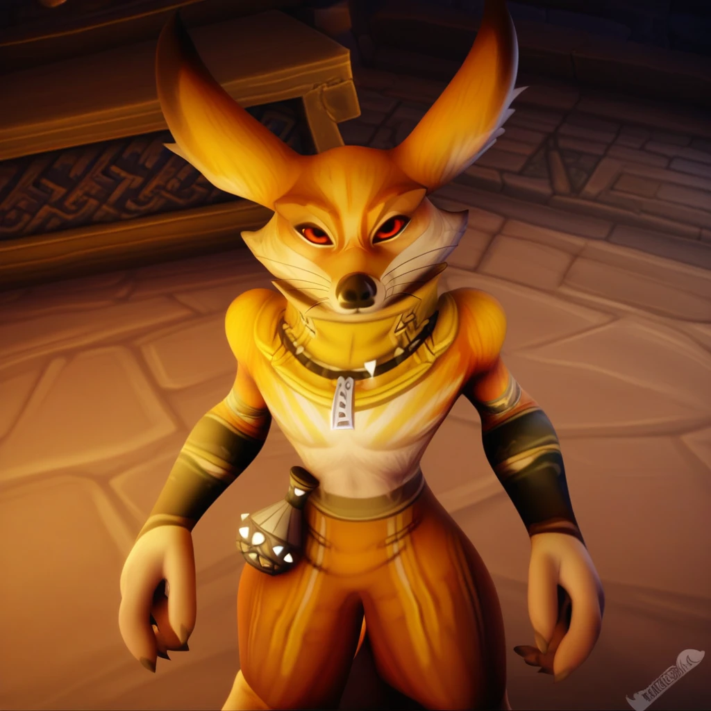 Kiro, Vulpera, Orange eyes, jewelry, bracers, neck brace, fox tail,