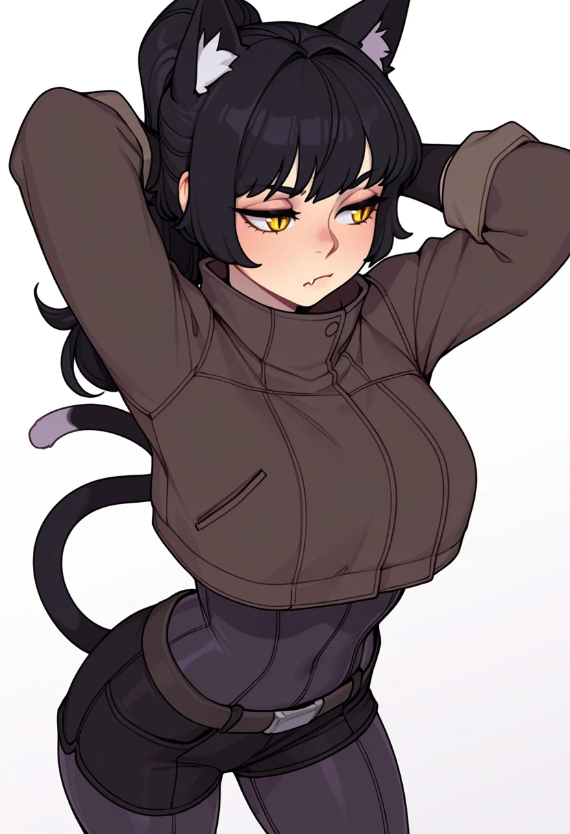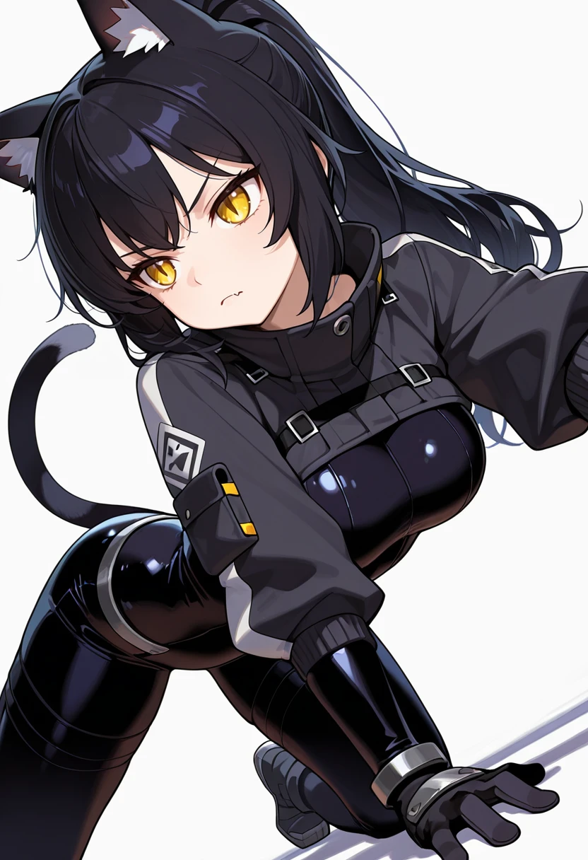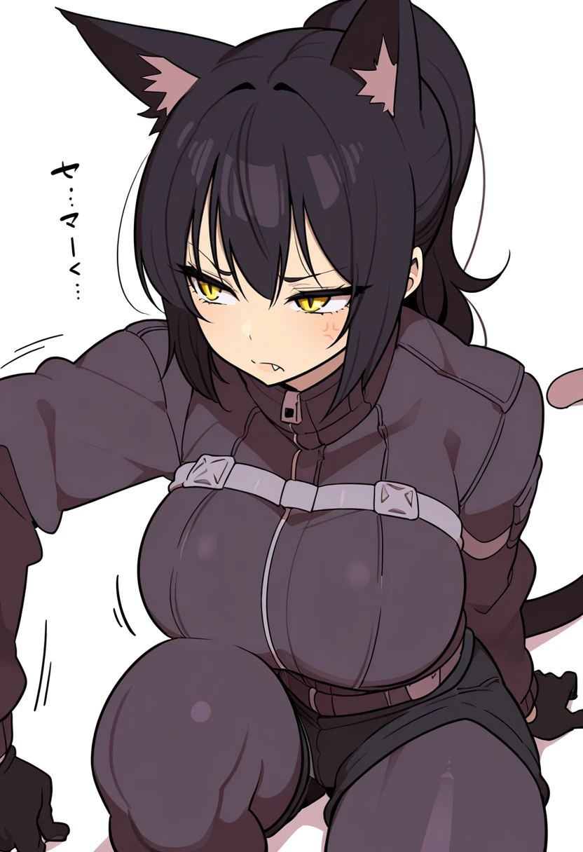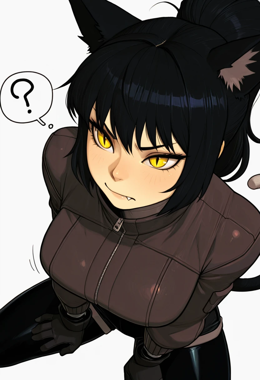1girl,cat girl, black hair, long hair, ponytail, bangs, yellow eyes, slit pupils, fang, cat ears, cat tail,👗Default Outfit