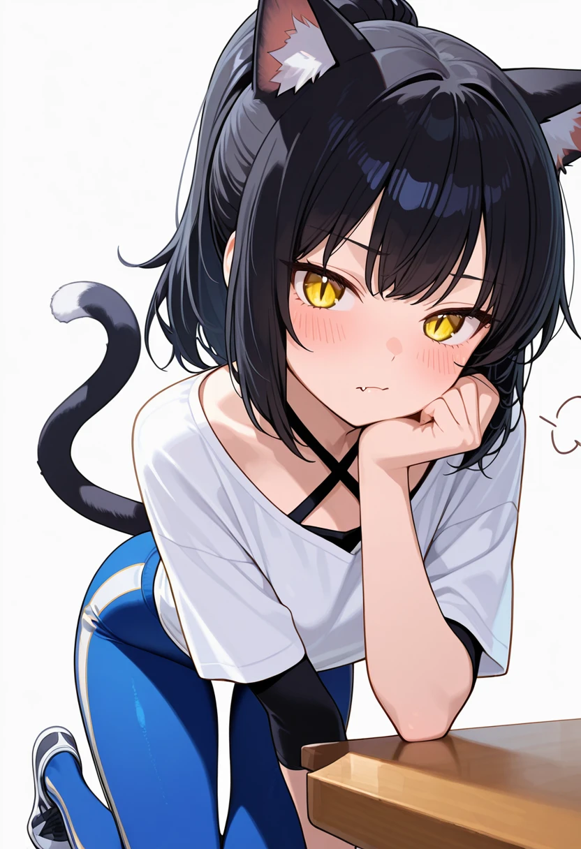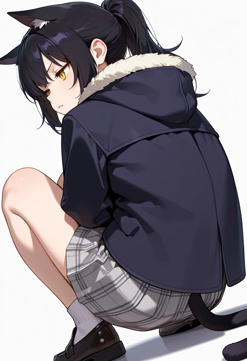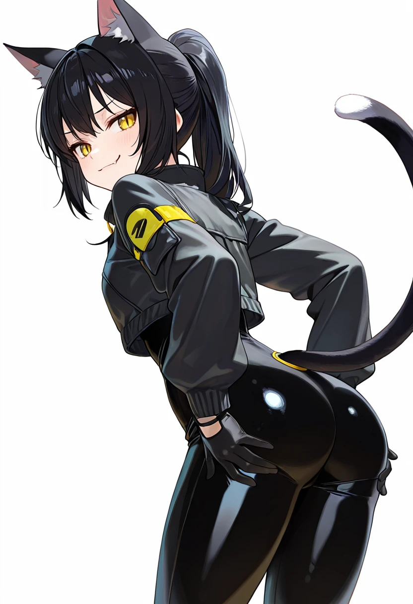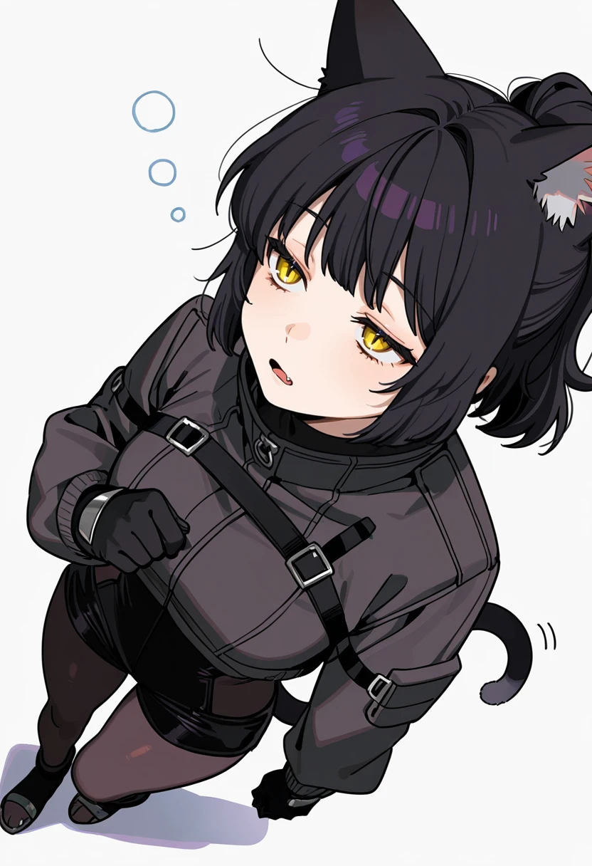 1girl,cat girl, black hair, long hair, ponytail, bangs, yellow eyes, slit pupils, fang, cat ears, cat tail,👗Default Outfit