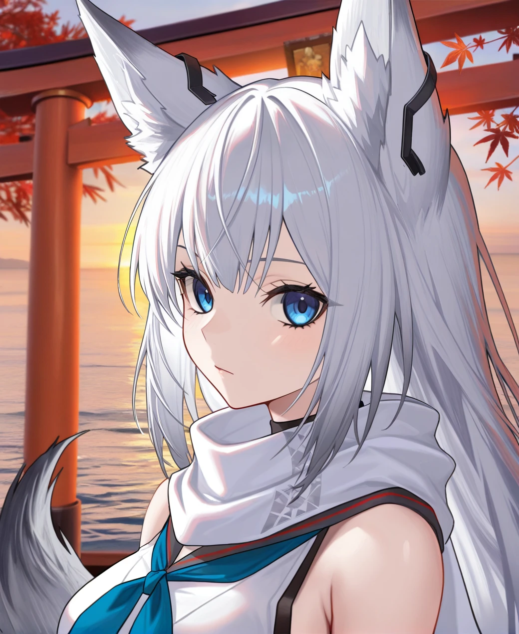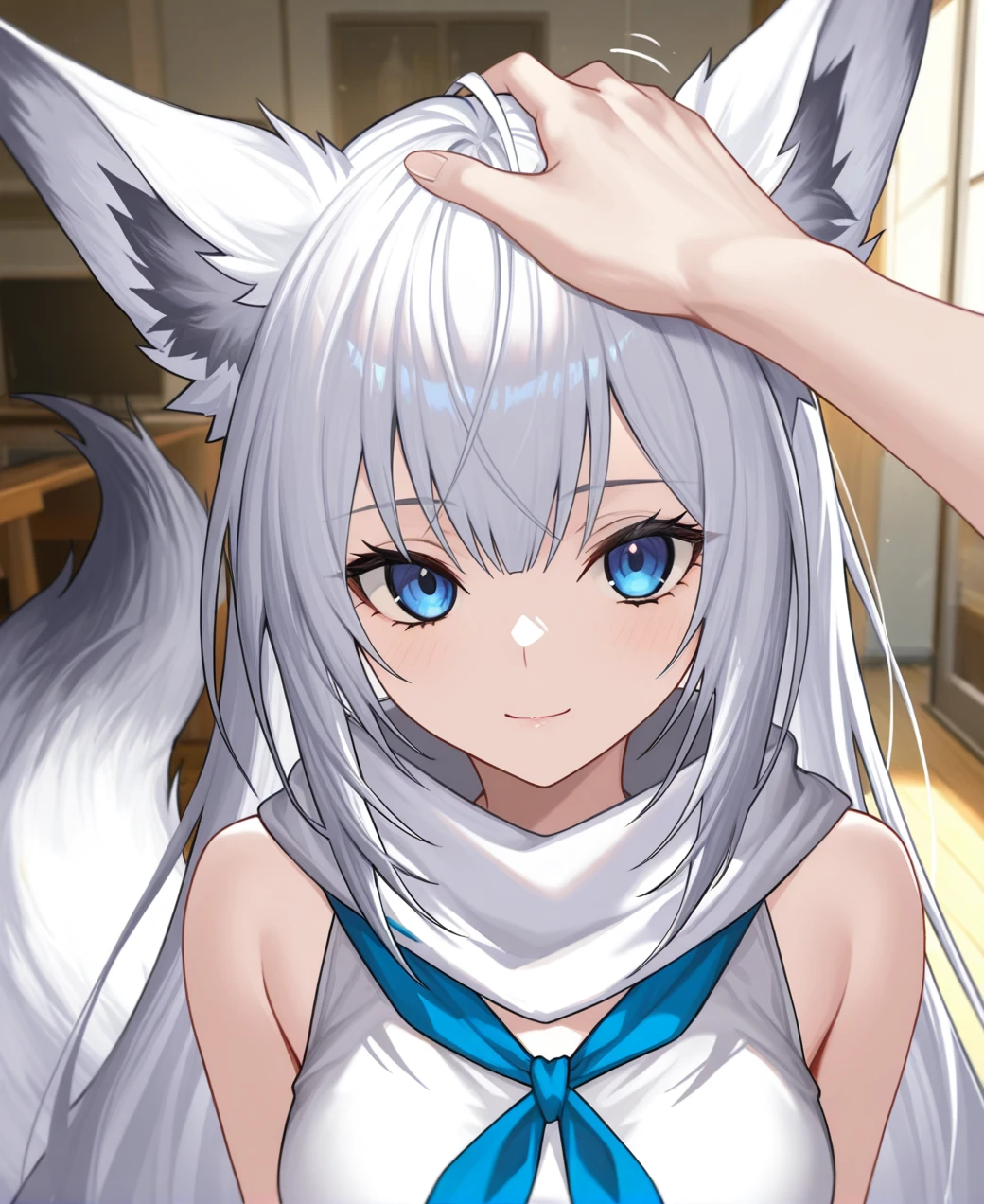 k4w4k4z3_m3t4,long_hair,blue_eyes, white_hair,tail,fox_girl,