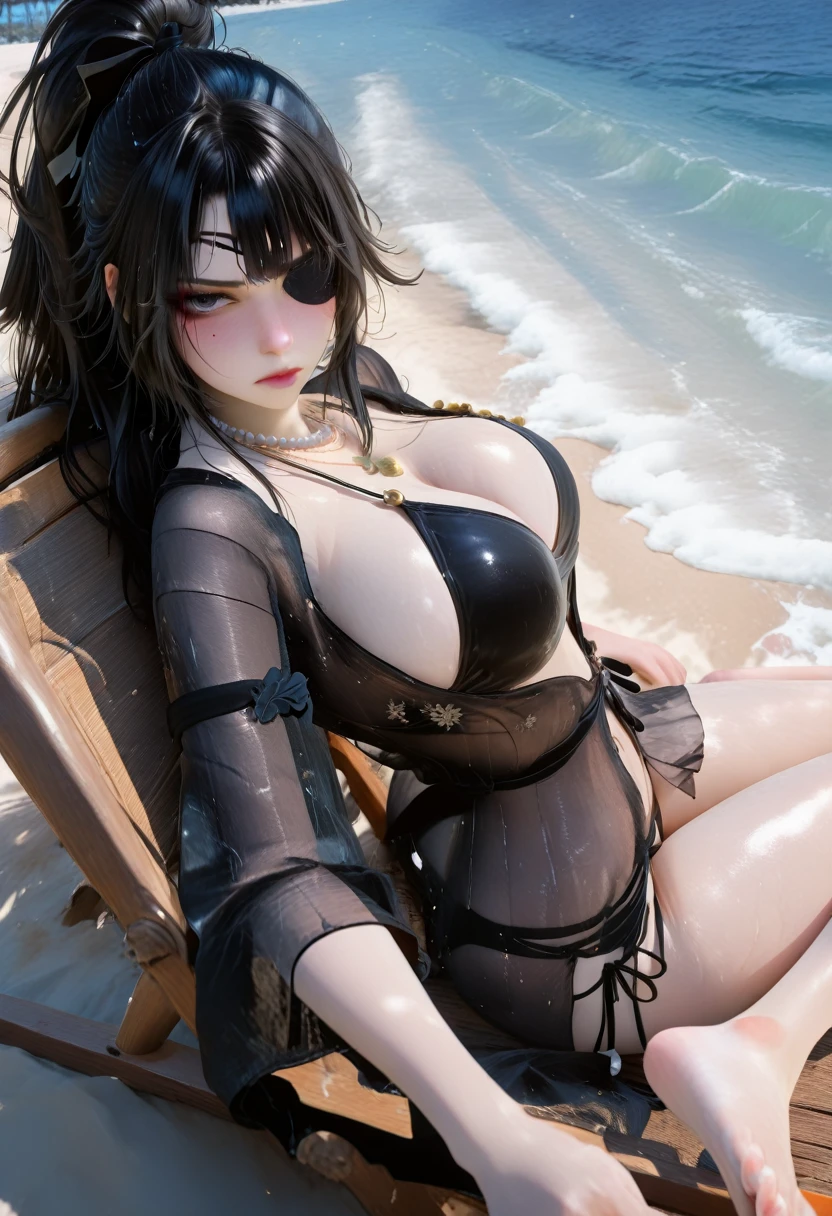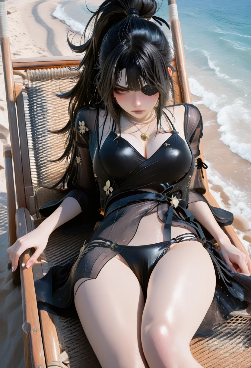 面部触发词(Facial trigger word): messy hair,centre parting bangs,black eyes,black hair,high ponytail,black eyepatch