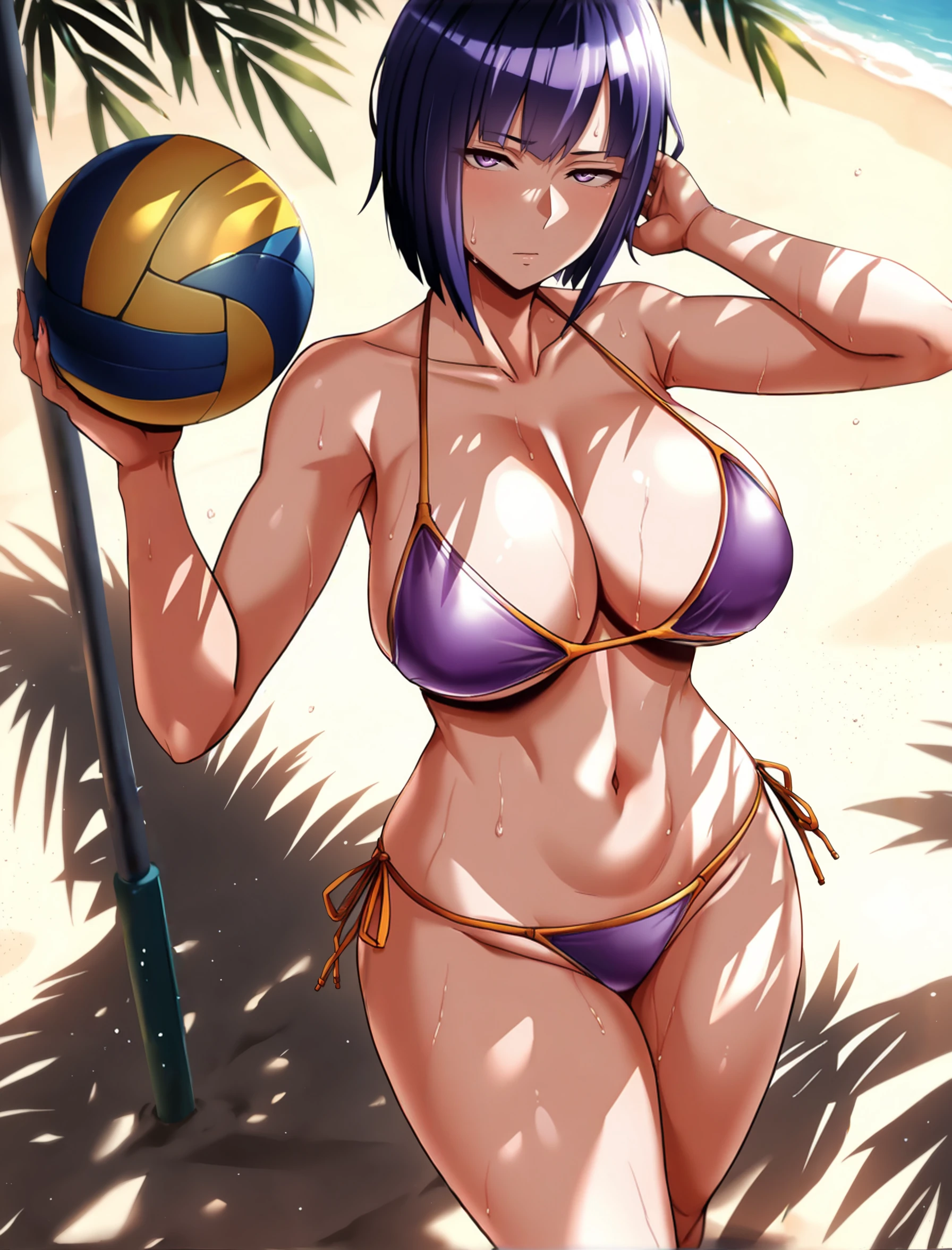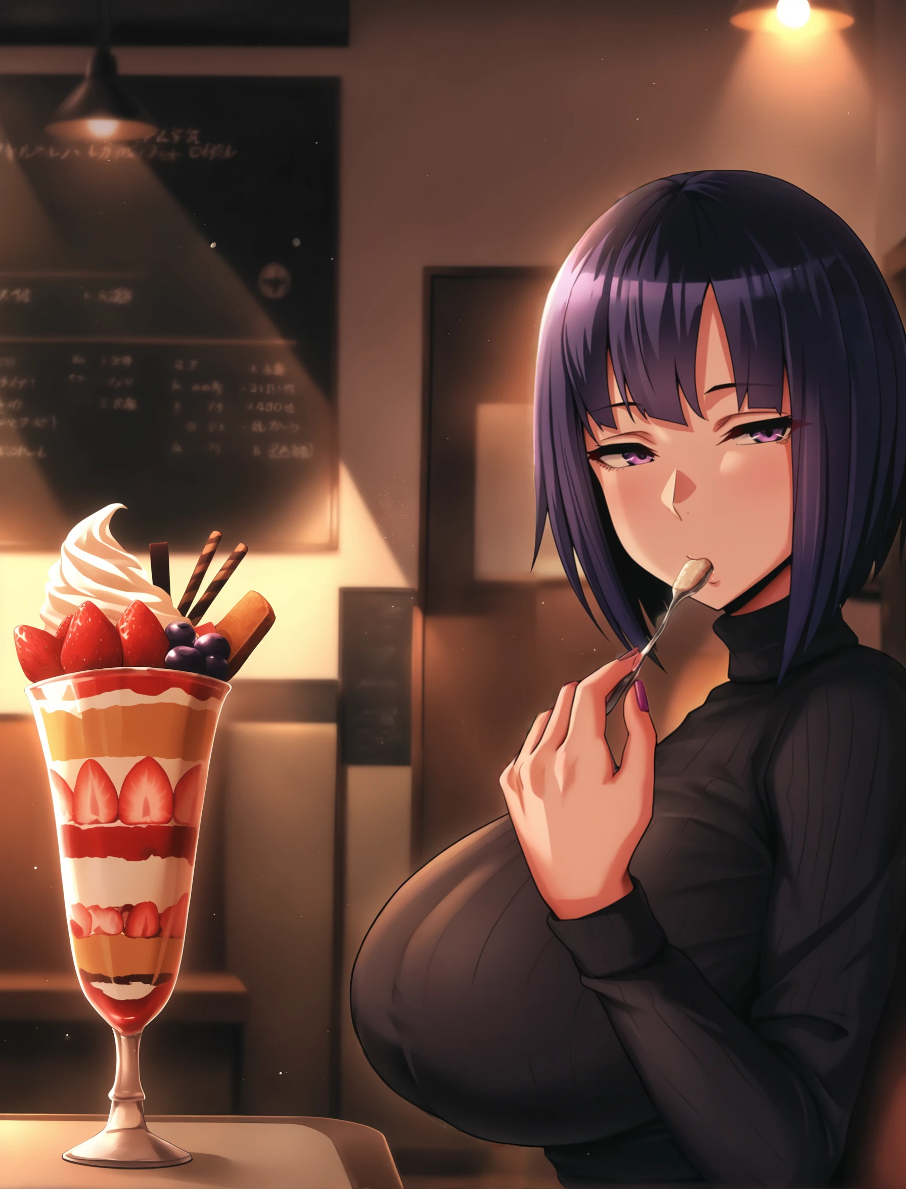 minami-san, purple hair, short hair, purple eyes,