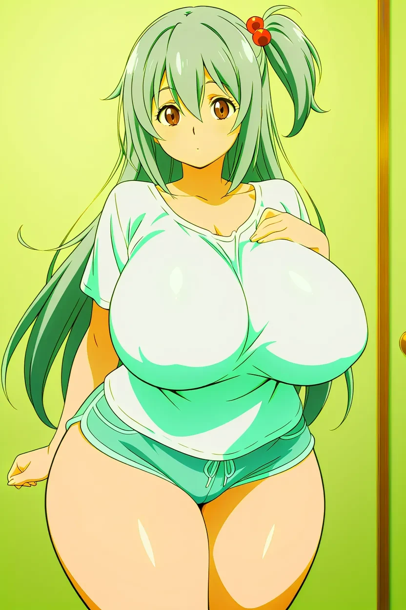 1girl, pepper-chan, brown eyes, grey hair, one side up, long hair, massive breasts, sexy, curvy, wide hips, thick thighs, voluptuous, blessed with a very sexy body, , fully , , ,