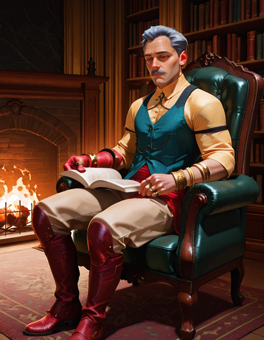 e_volkarin, 1boy, mature male, hazel eyes, mustache, grey hair, black hair, multicolored hair, very short hairoptional - add "muscular" to negative prompt if he looks too bulky (especially in NSFW or shirtless shots).