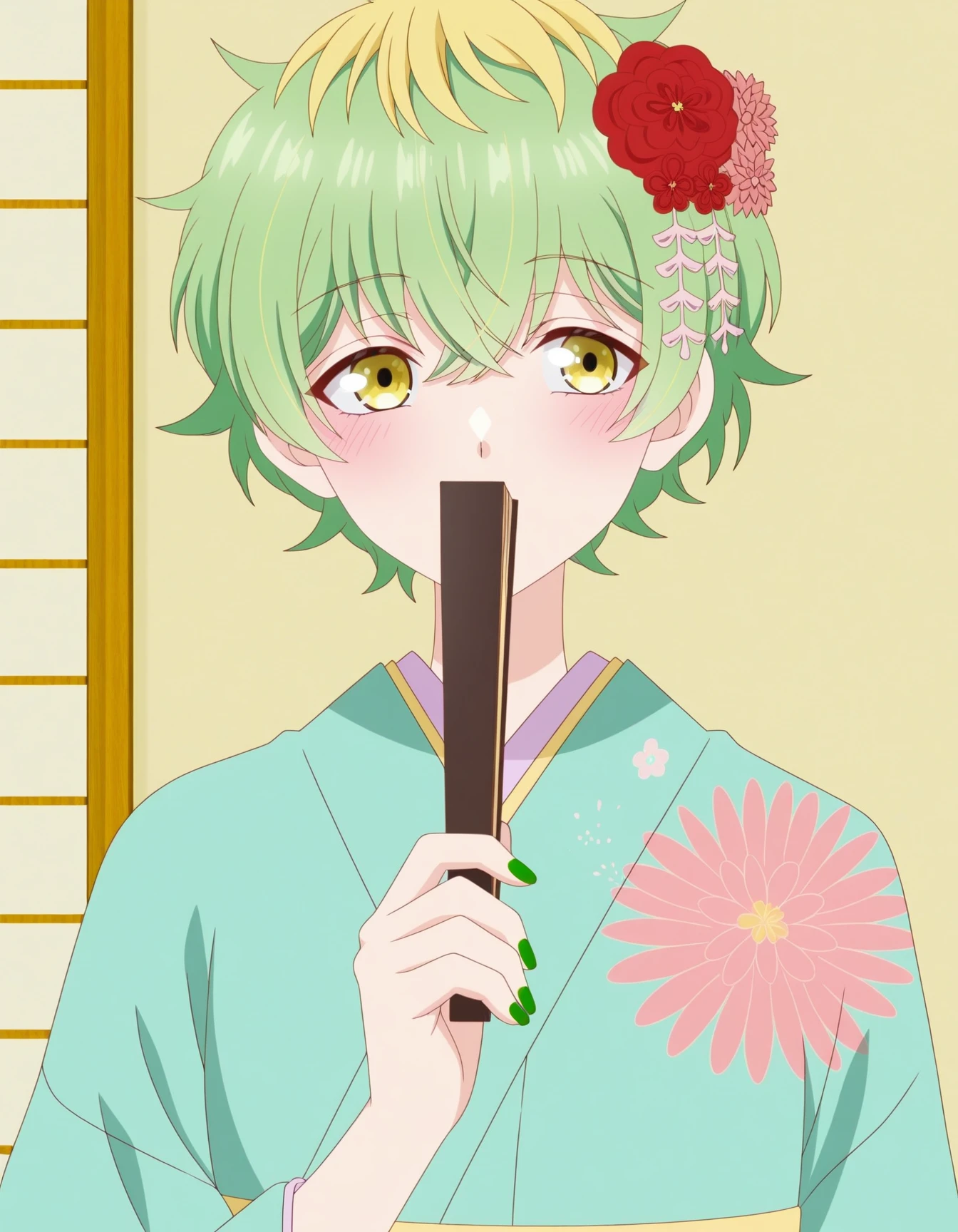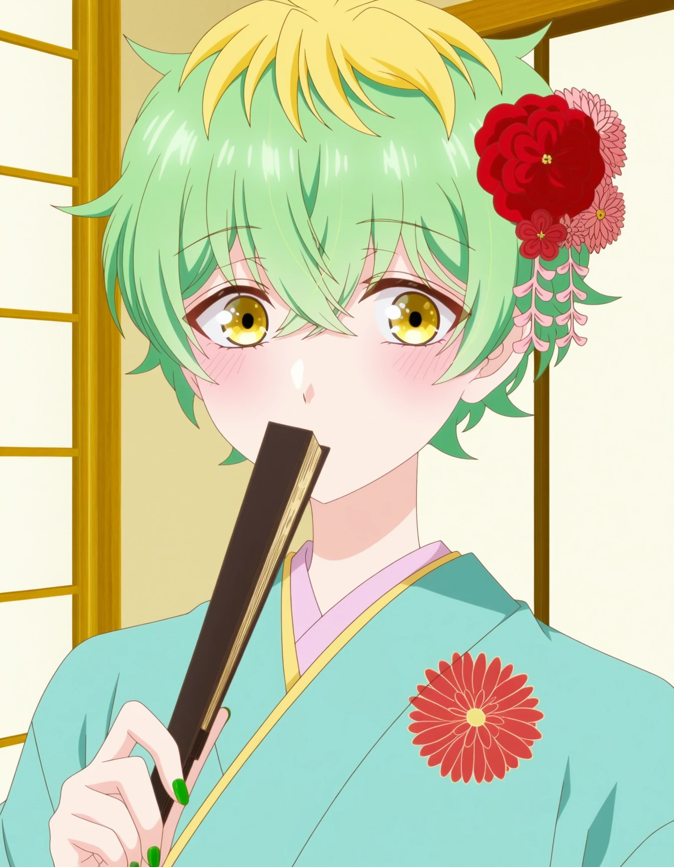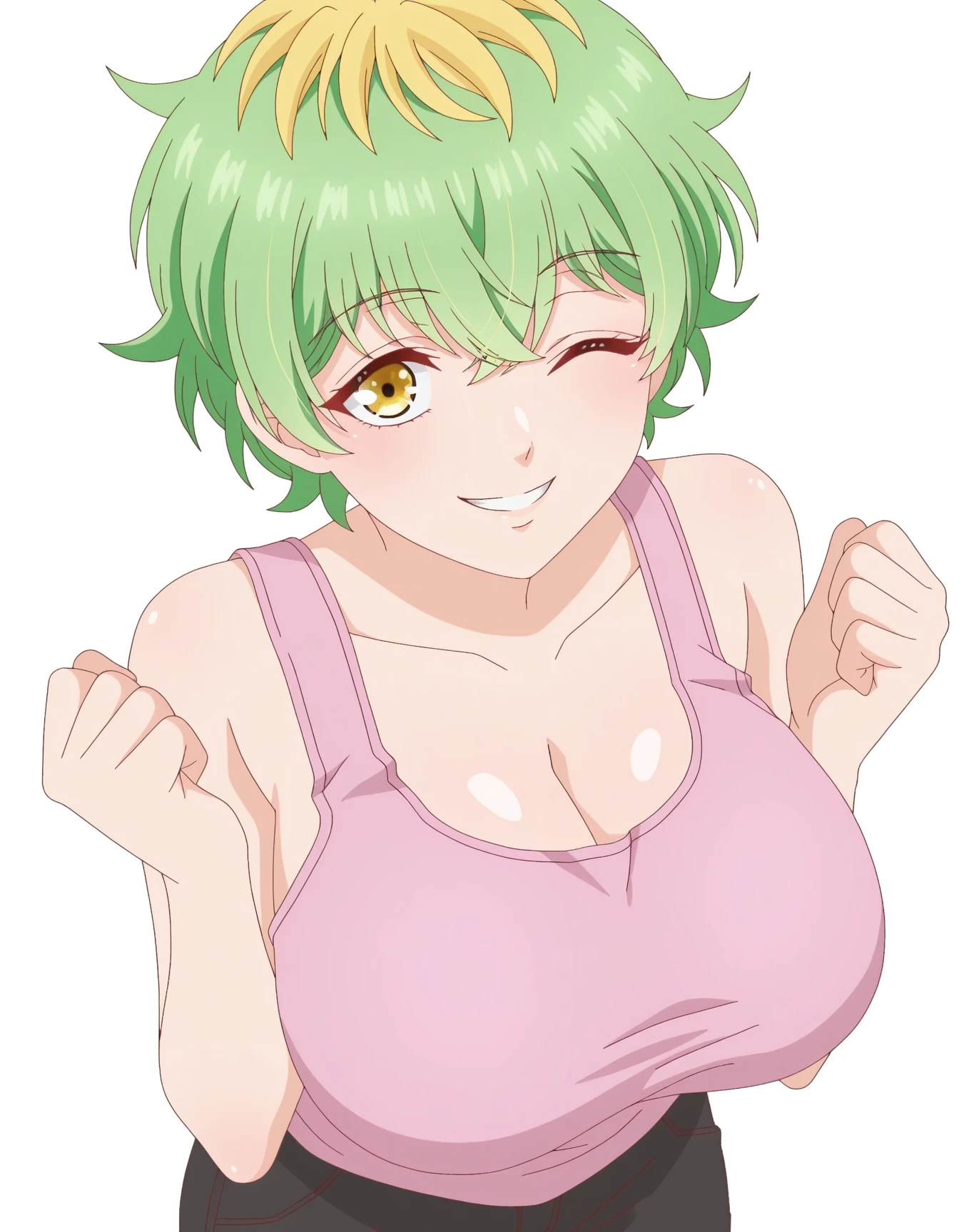 M1W4_XL, blonde hair, multicolored hair, green hair, two-tone hair, streaked hair,