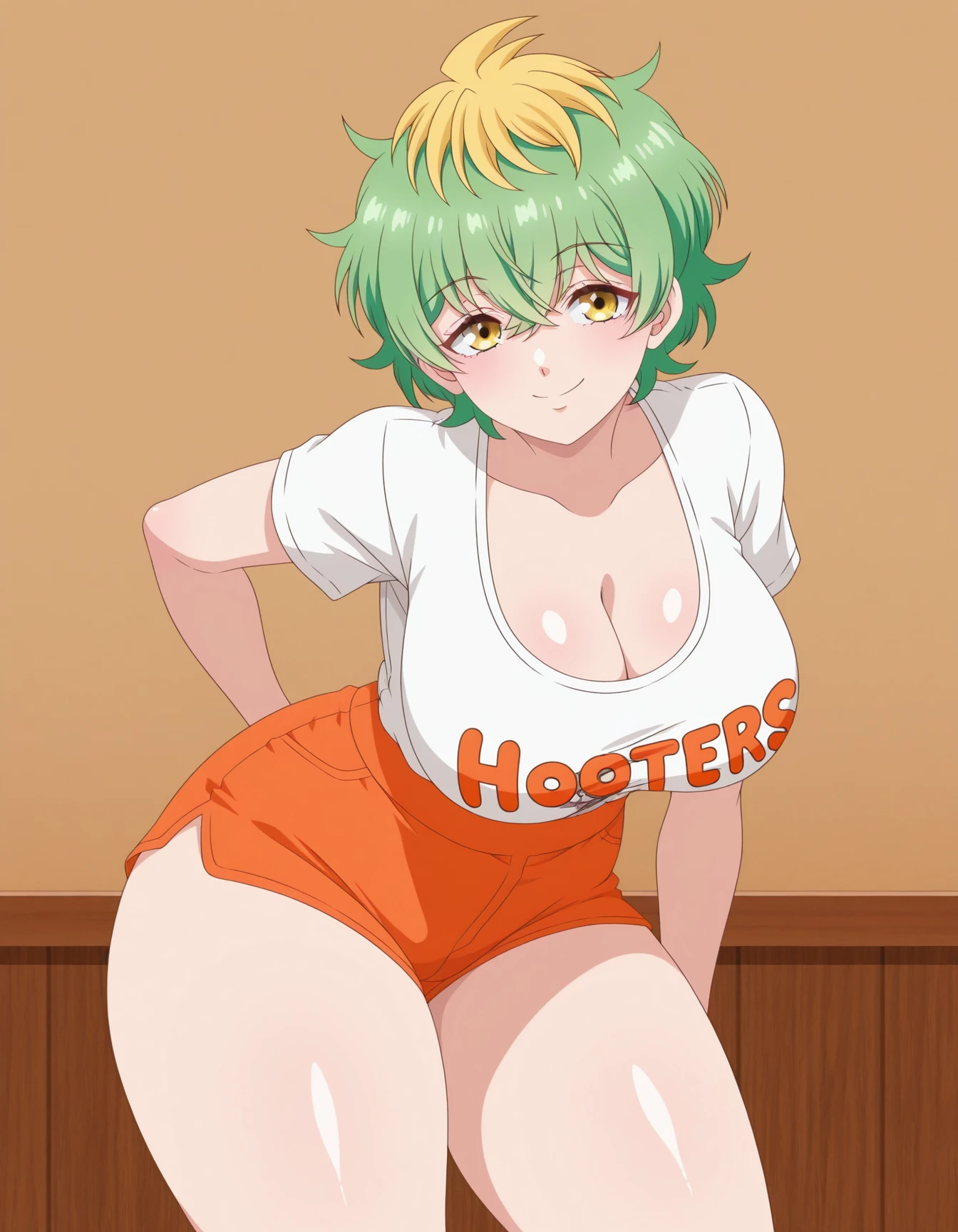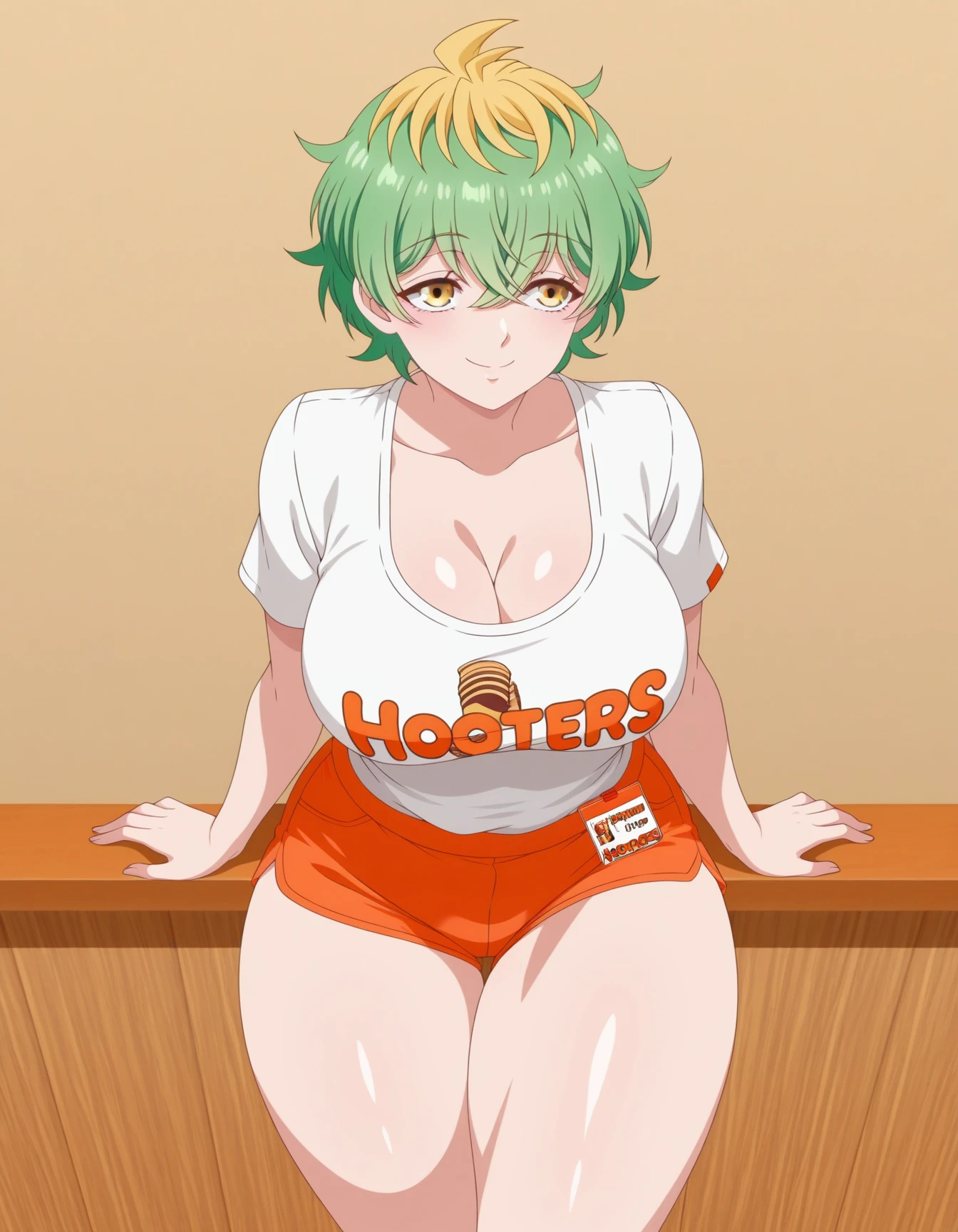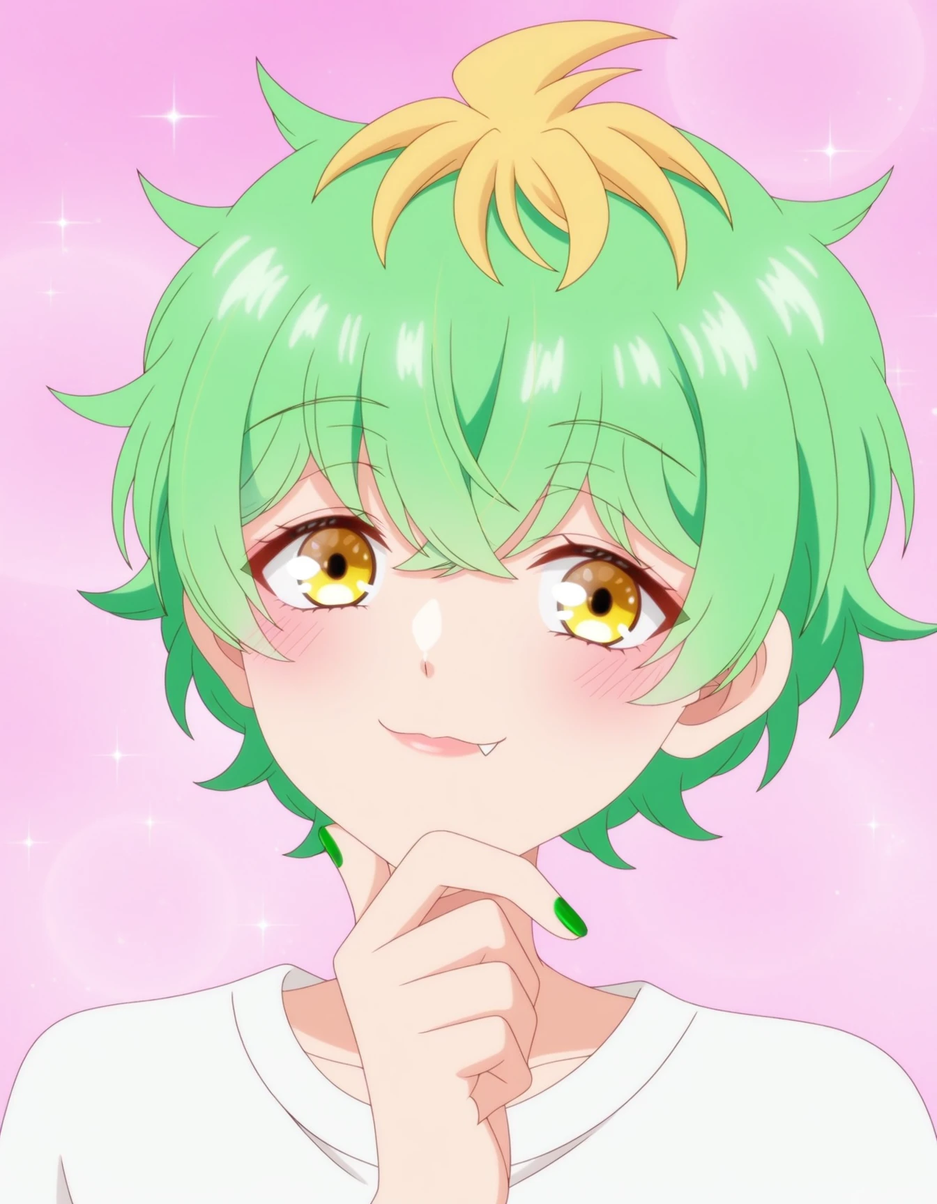 M1W4_XL, blonde hair, multicolored hair, green hair, two-tone hair, streaked hair,
