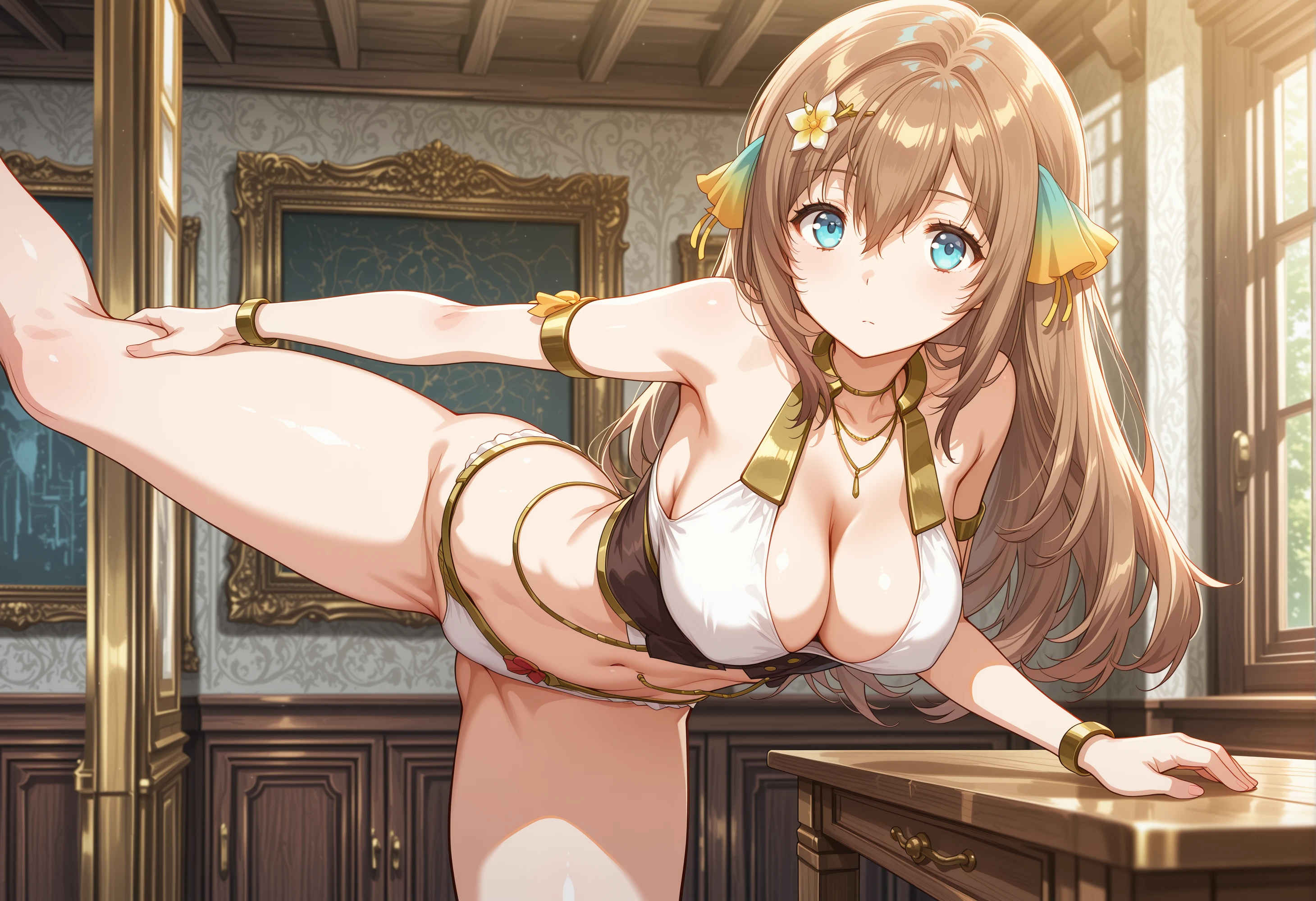 Ionasal, ribbon, hair ornaments, long_hair, blue_eyes, brown_hair