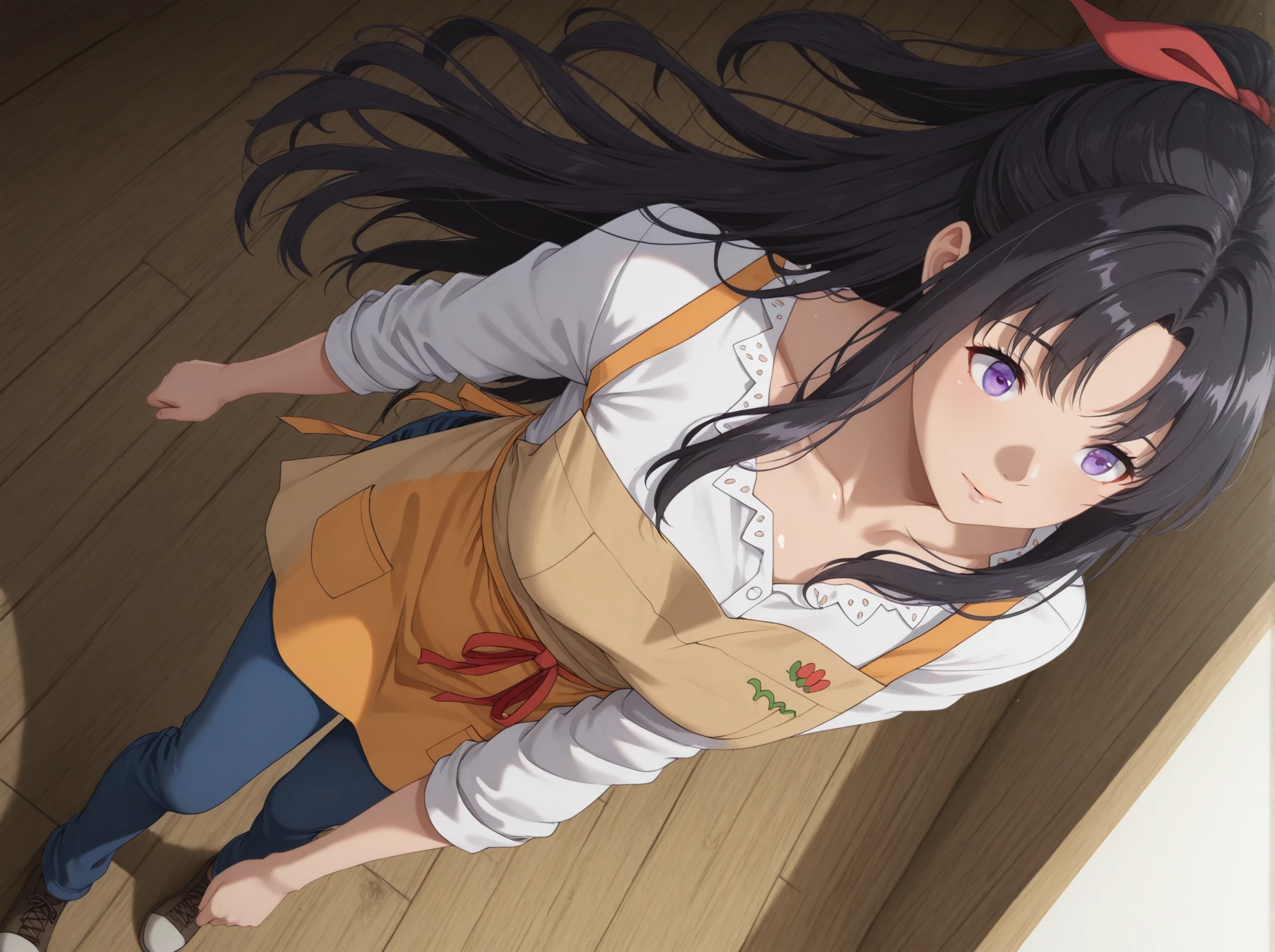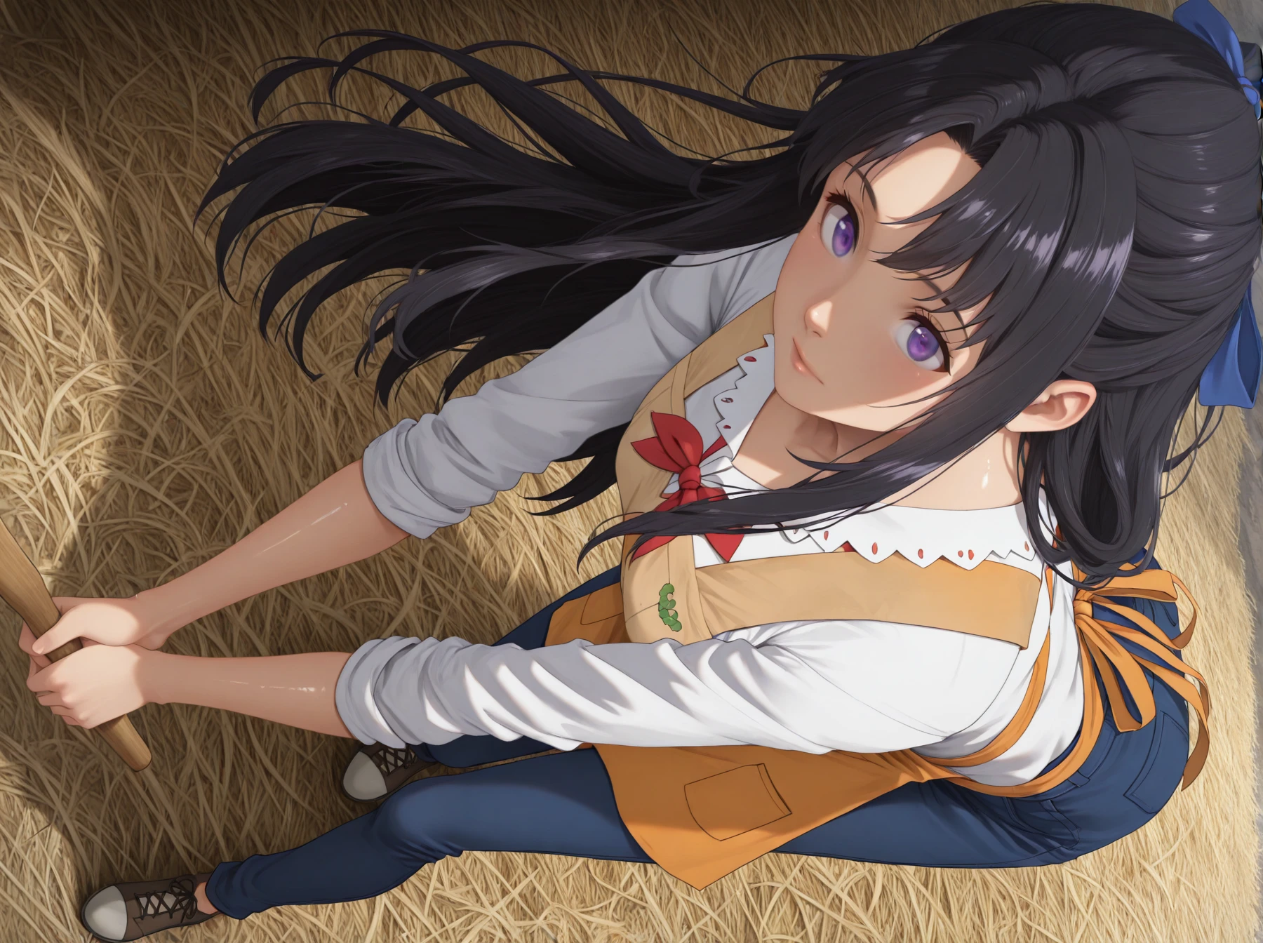 Character: (FrauFarmingLife, purple eyes, black hair, long hair, hair ribbon)