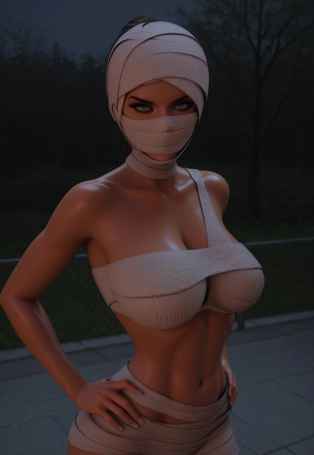 Bella, Dark Brown Hair, Blue Eyes, Large Breasts, Messy Updo