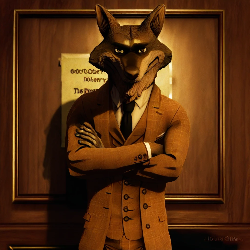 Tags: DOleary, furry, wolf, two-tone fur, animal ears, snout, brown suit, black tie, white shirt