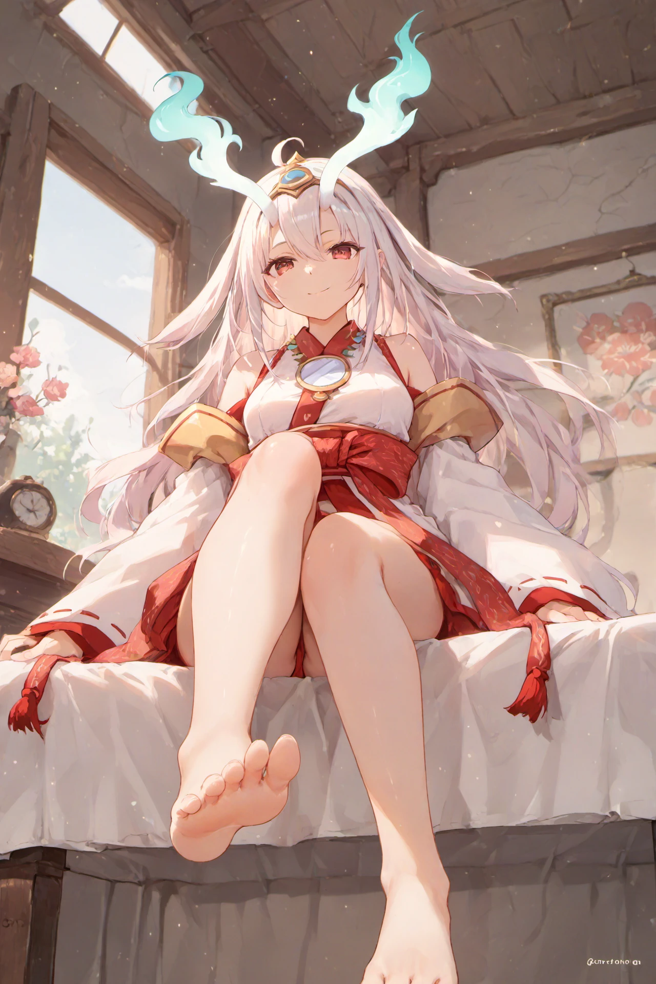 japanese_clothes, bare_shoulders ,long_sleeves, detached_sleeves