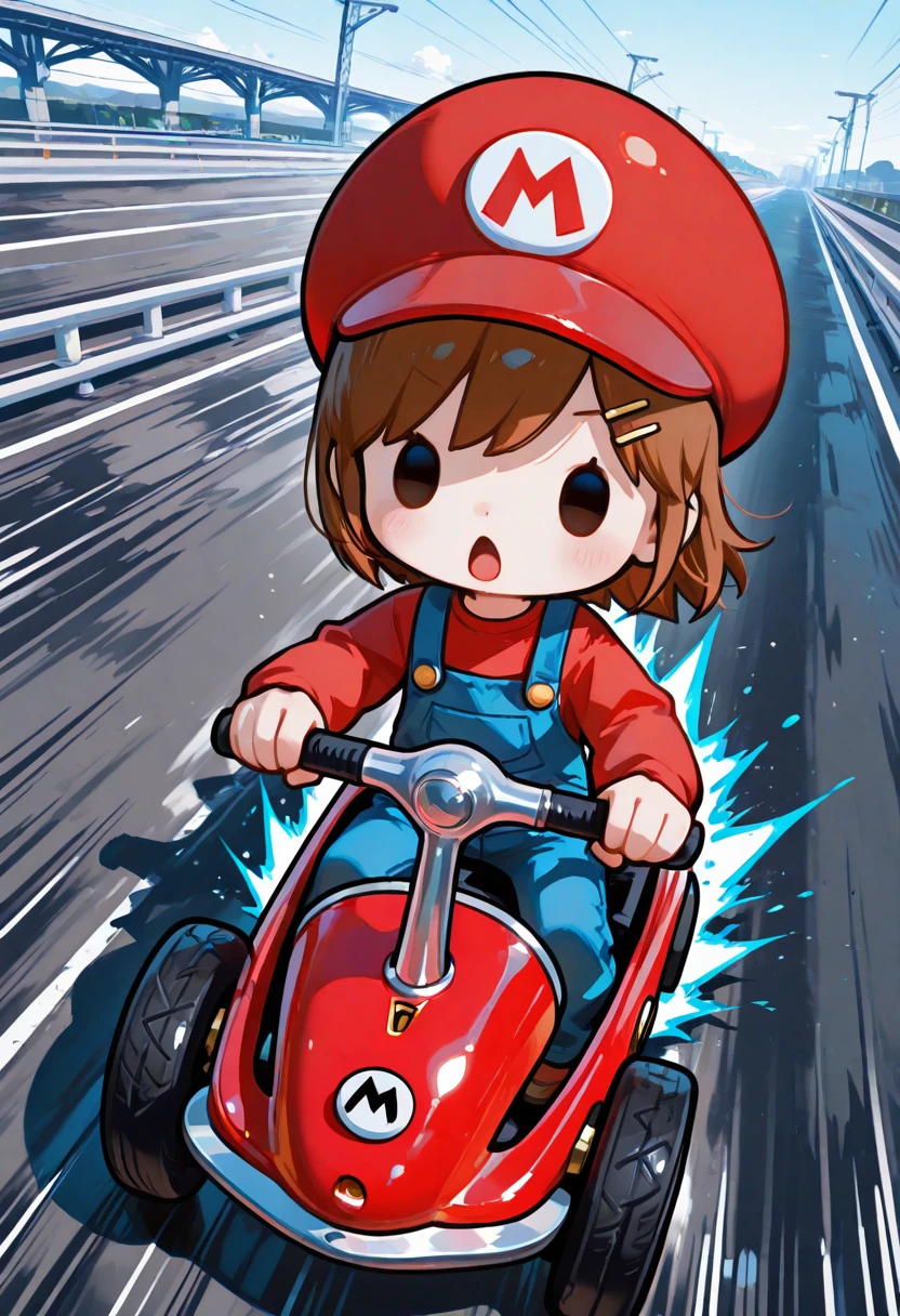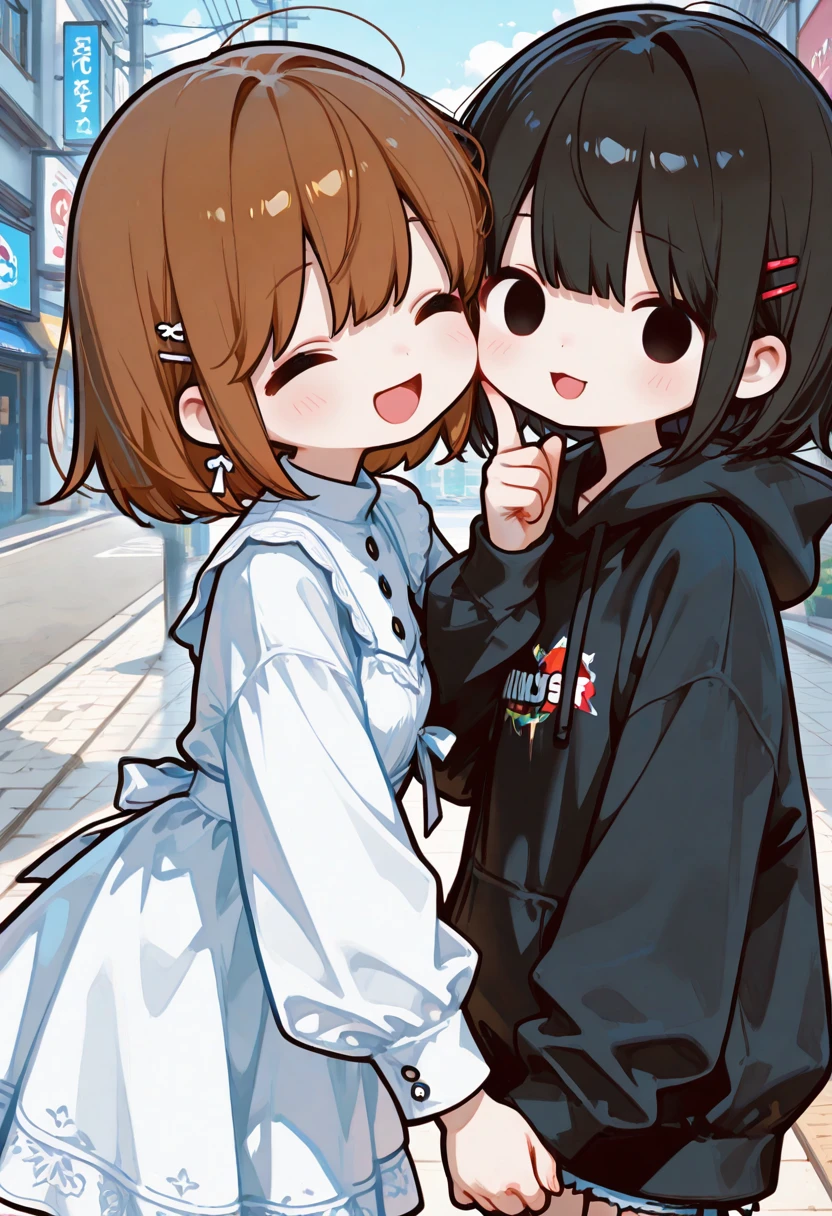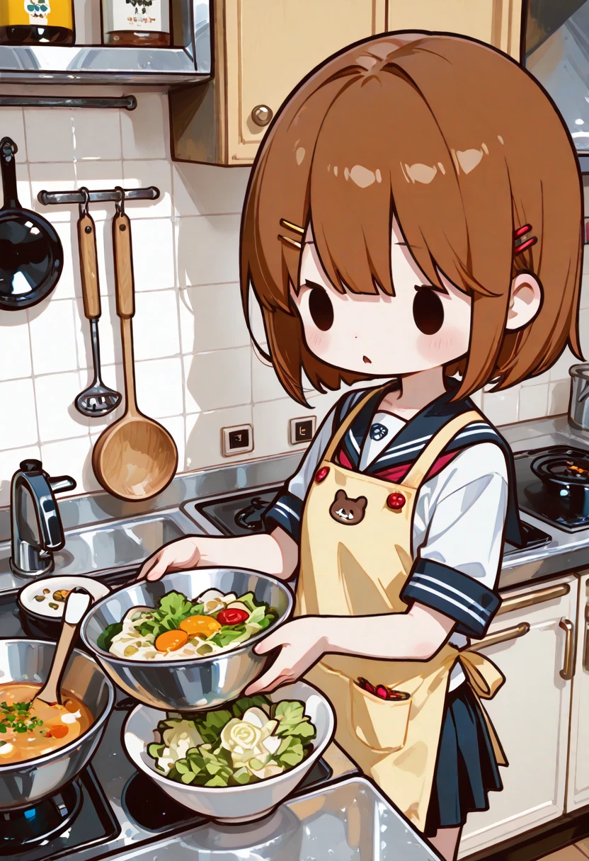 1girl, rinwser, chibi, solid oval eyes, brown hair, bangs, short hair, hairpin,