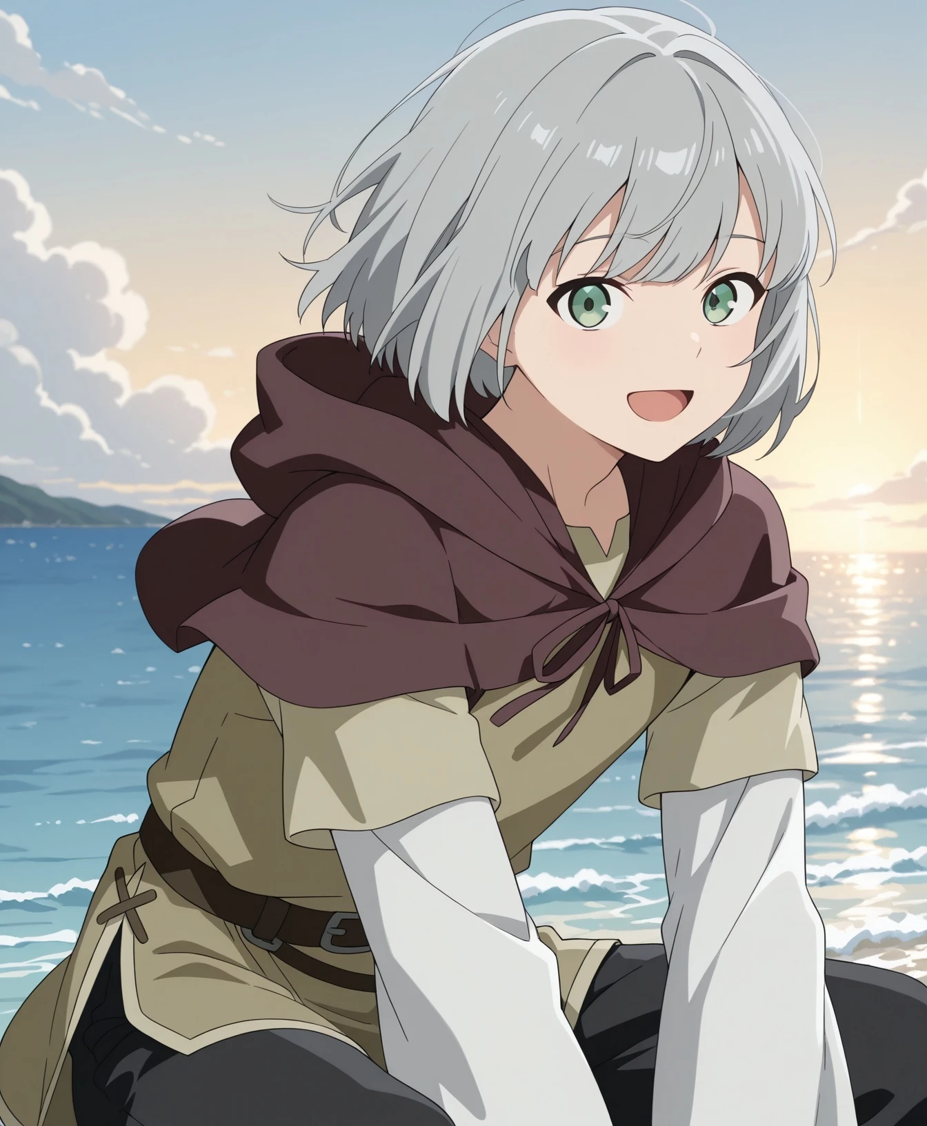 Trigger words are: Amon,green eyes,gray hair,bangs,bob cut,