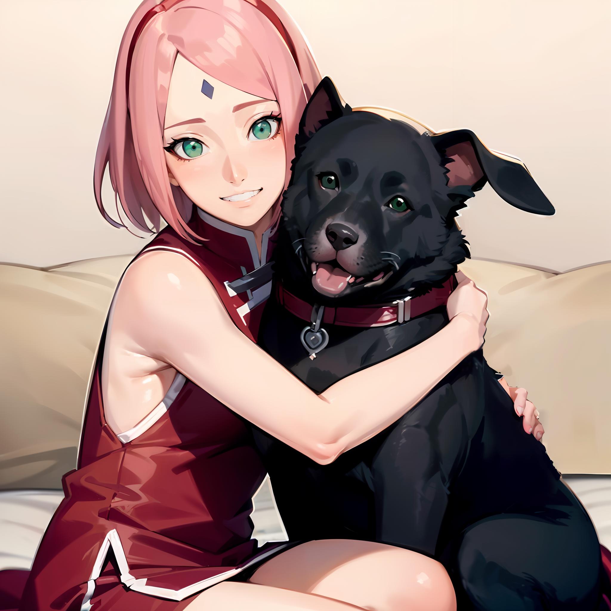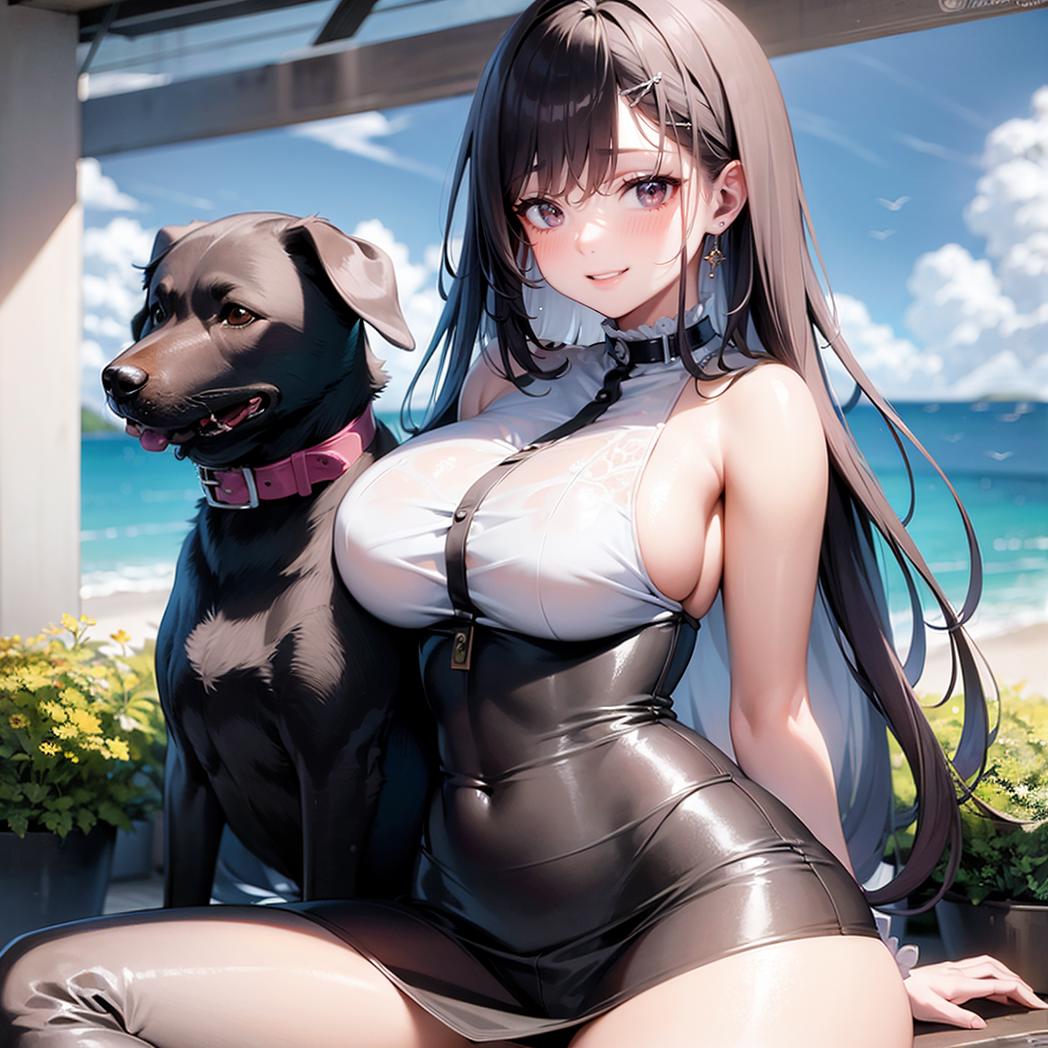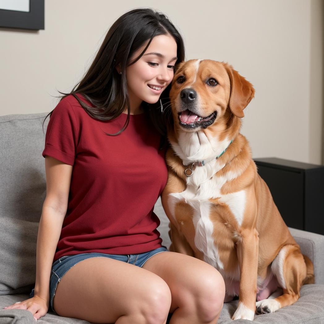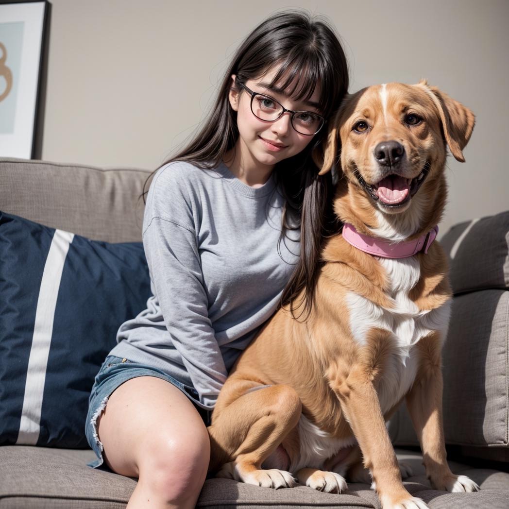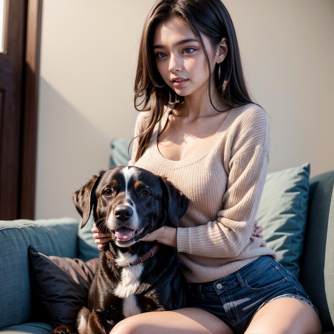 + woman sitting cuddle dog, ((dog)), <lora:SweetCandy_Girl_and_dog_v1:0.5>