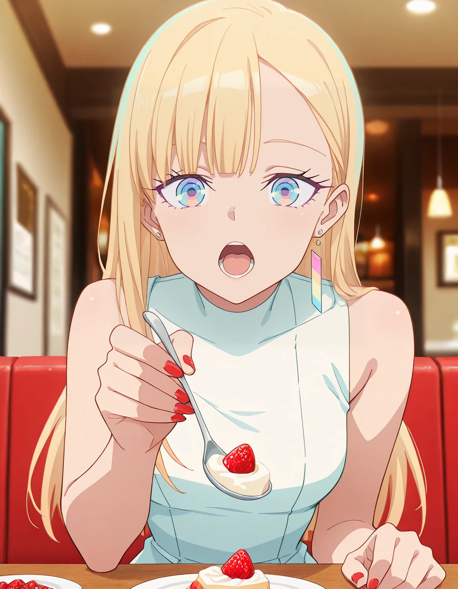 <lora:yuugure-towa_no_yuugure_s1-v3-ixl-anime-soralz:1>, yuugure (towa no yuugure), long hair, blonde hair, asymmetrical bangs, single sidelock, blue eyes, multicolored eyes, (green eyes:0.6), red nailsOutfit - Default