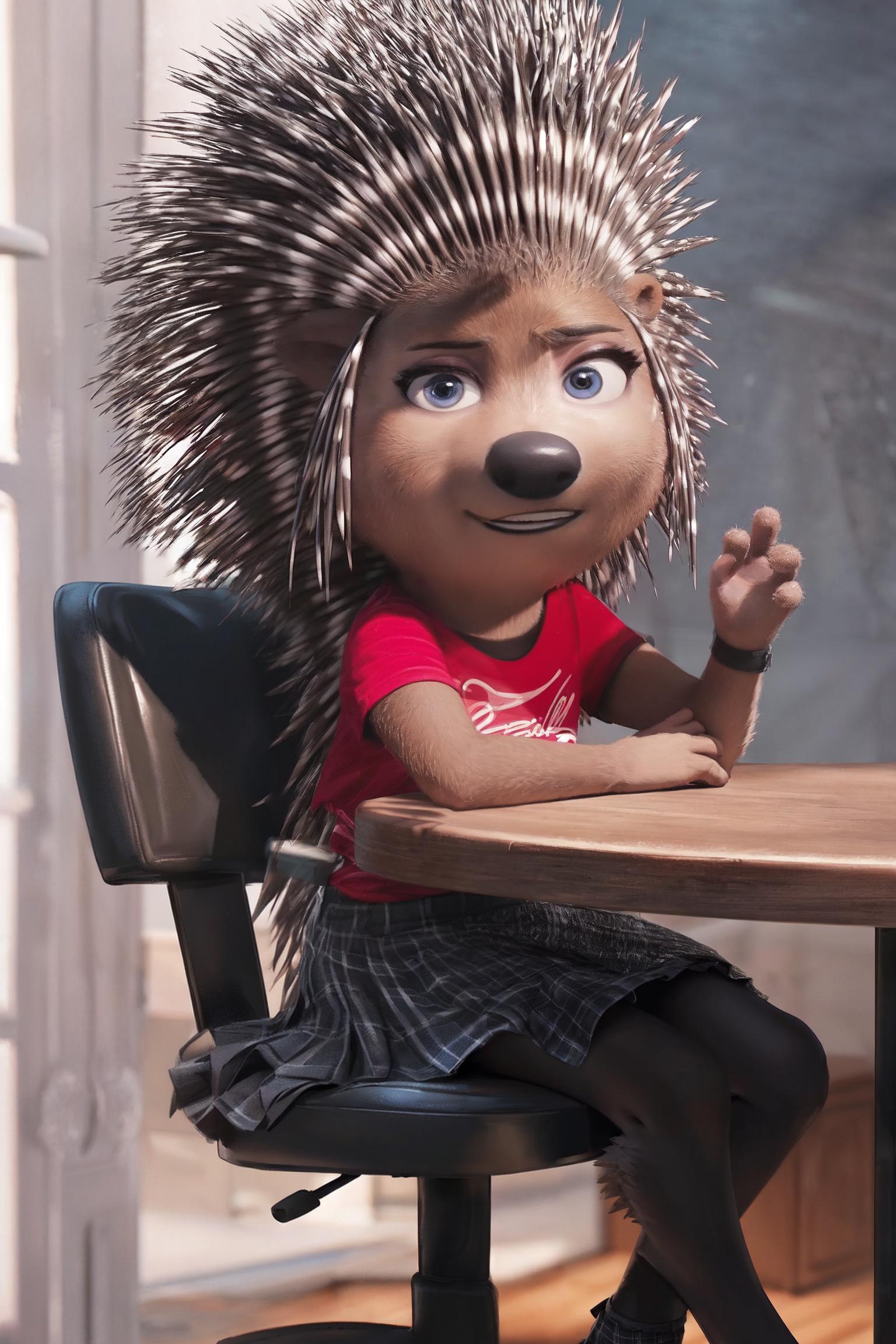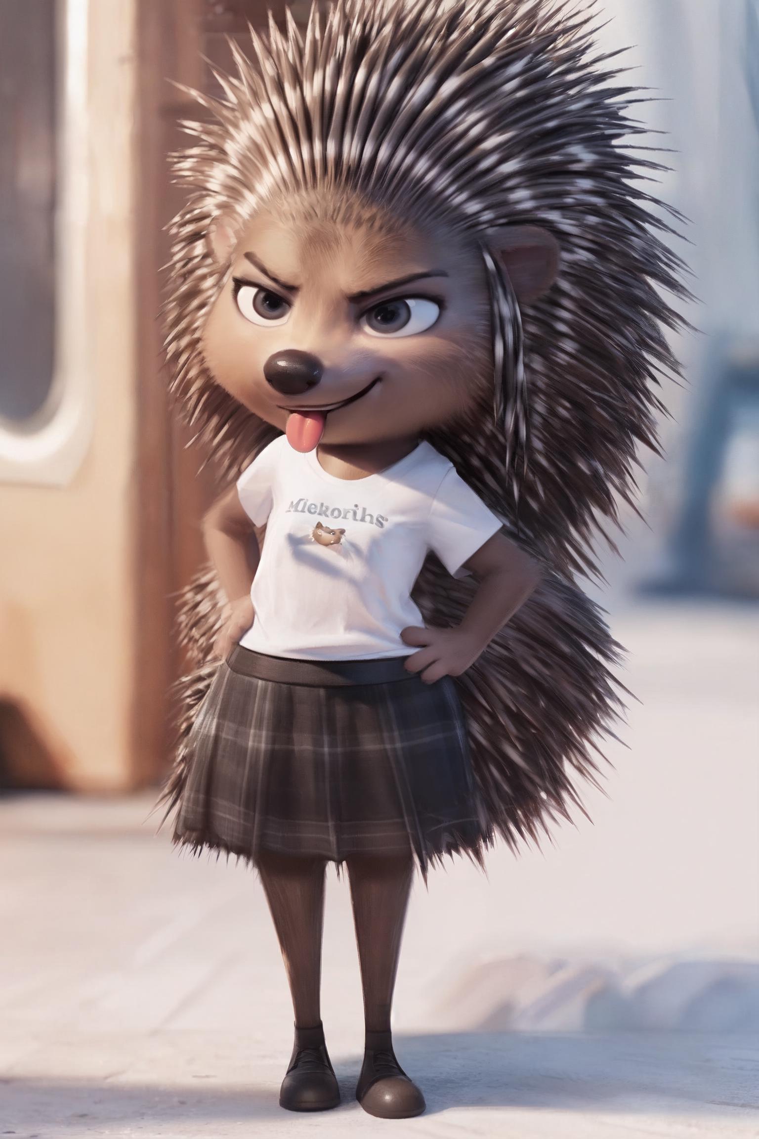 (by qupostuv35:1.2), (photorealistic painting art, professional photo, 4k:1.2), female, (Detailed face), (solo:1.1), (more details:1.1), ((anthro, humanoid)), [(thin:1.1) : small petite : (ash porcupine:1.2):4], (Detailed face), (anthropomorphic legs, anthropomorphic hands:1.1), (solo), (detailed background:1.1), <lora:Ash_V1:0.7>