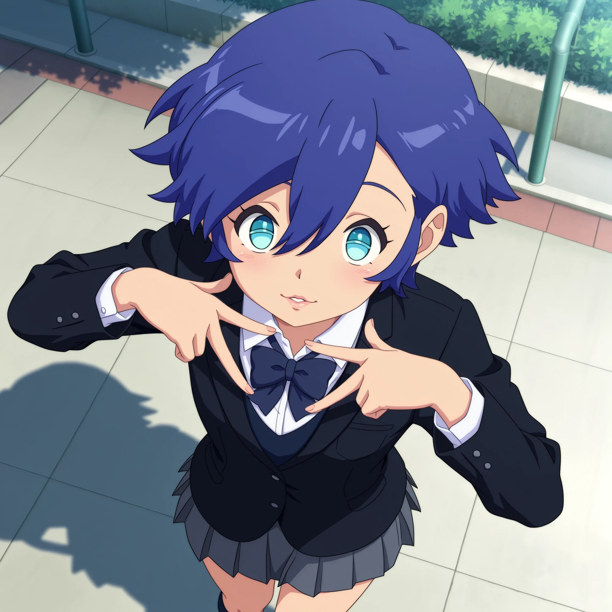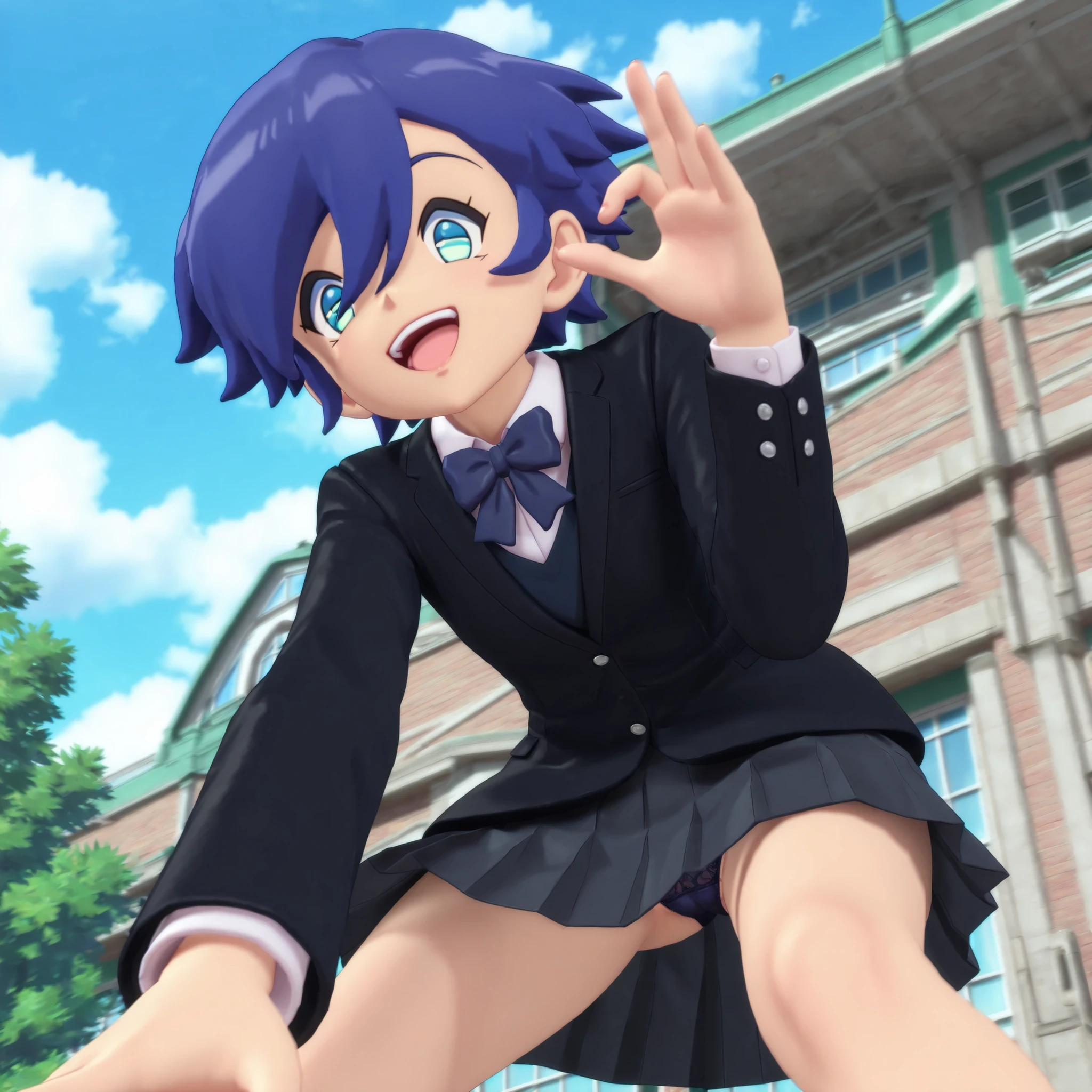 school uniform, black uniform, ribbon, skirt,