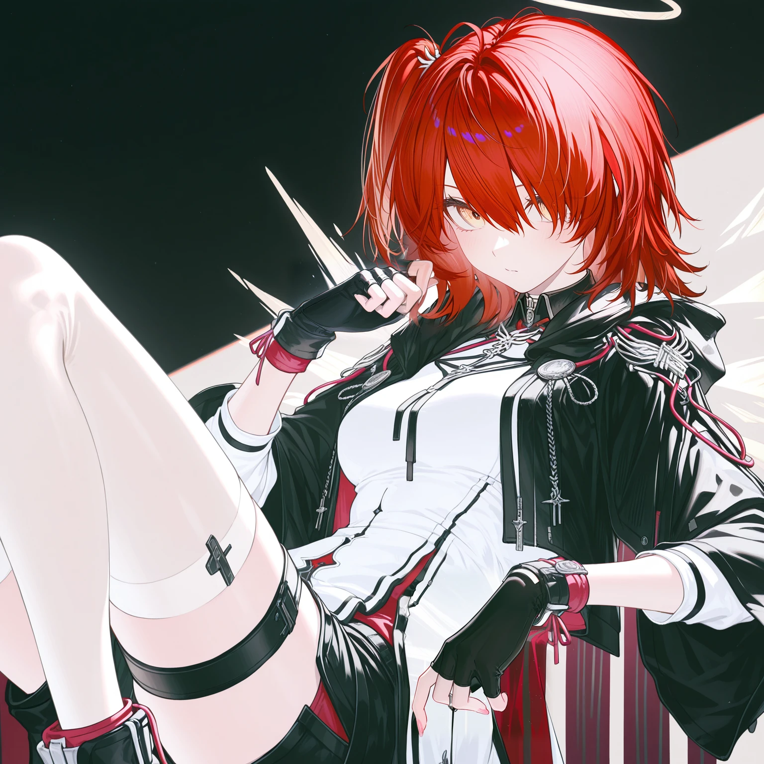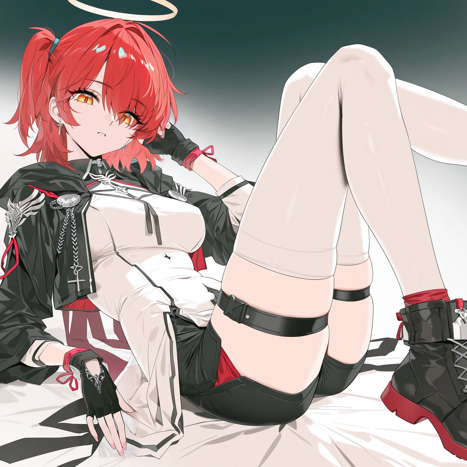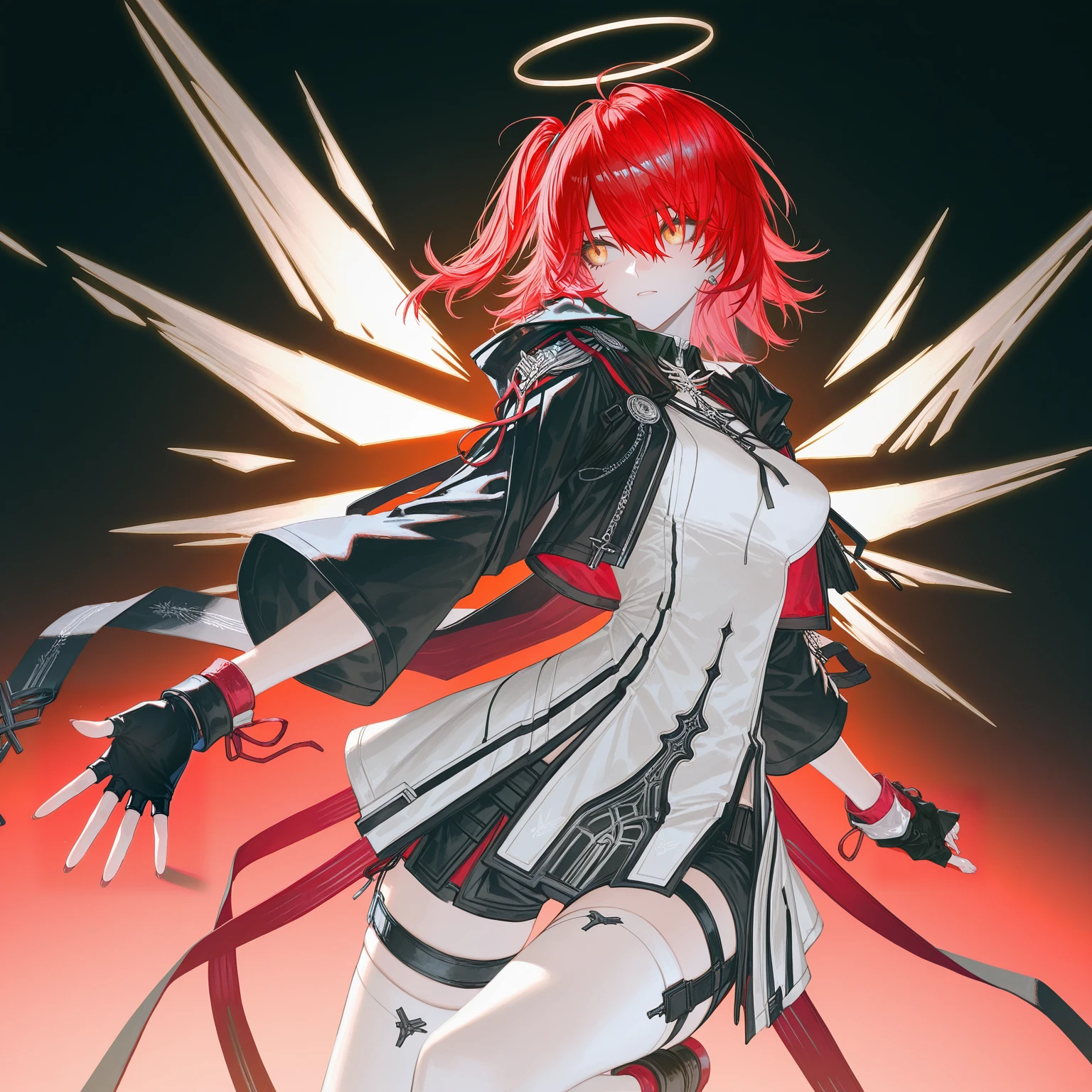 Trigger word:exusiai the new covenant \(arknights\),red hair,red eyes,one side up,