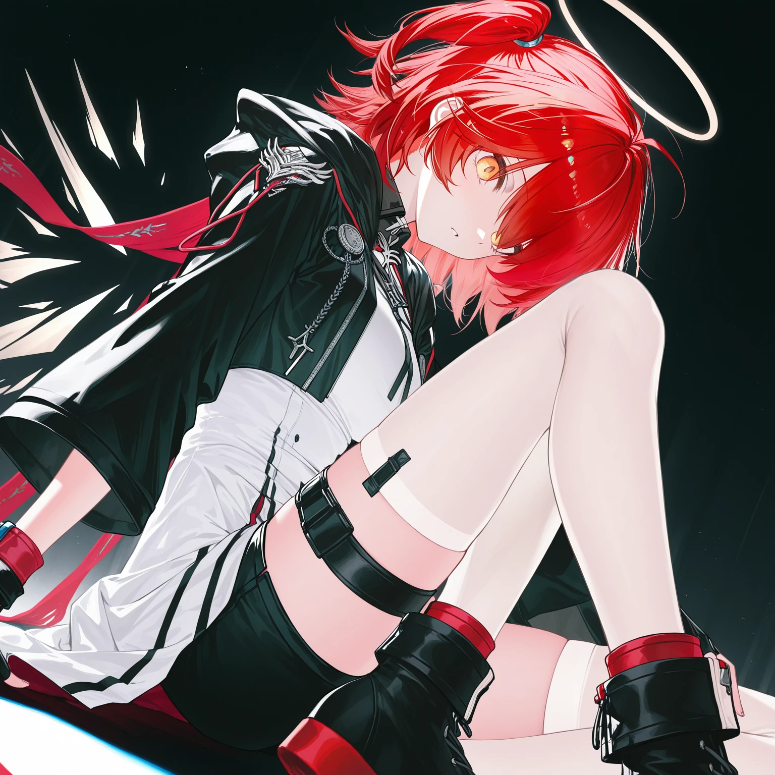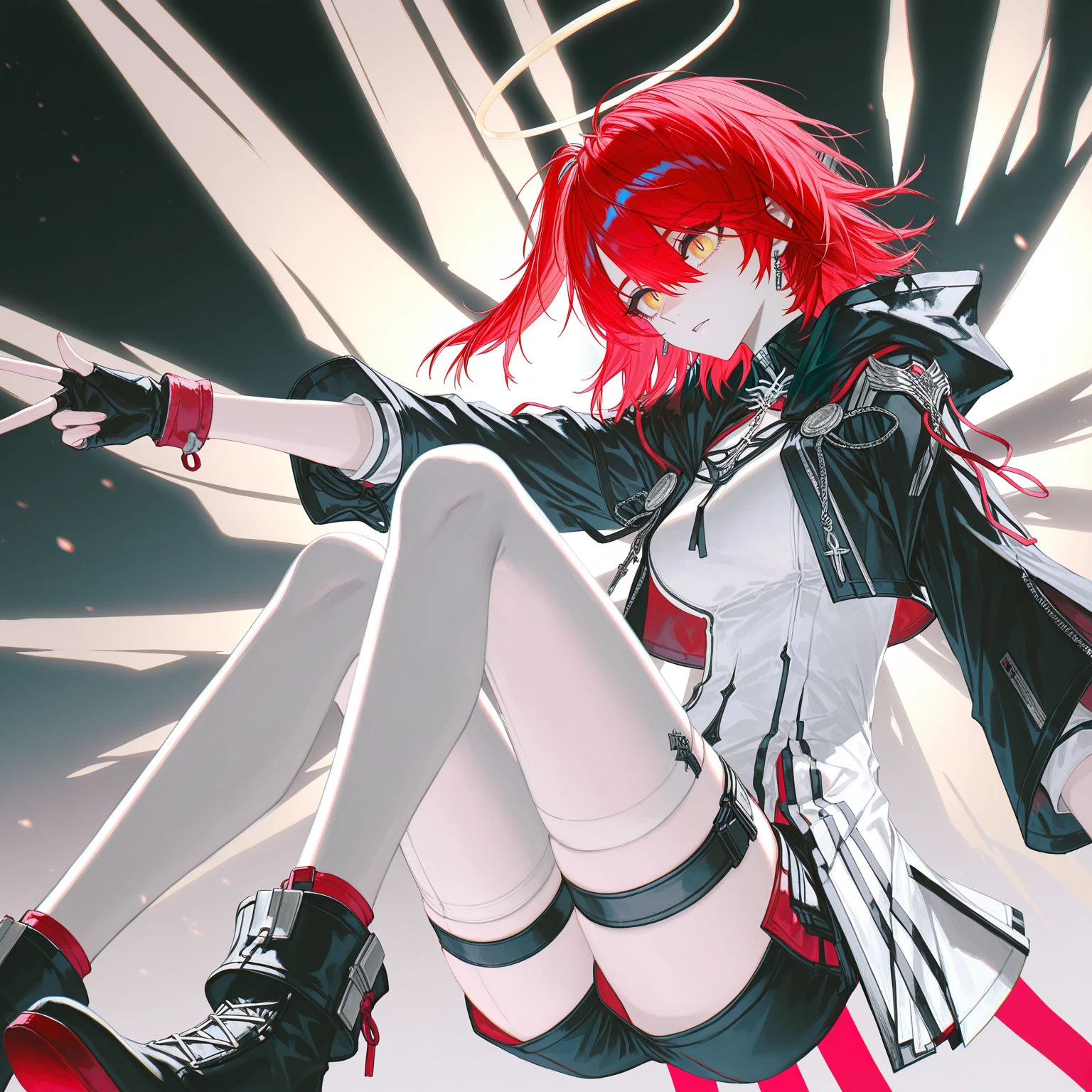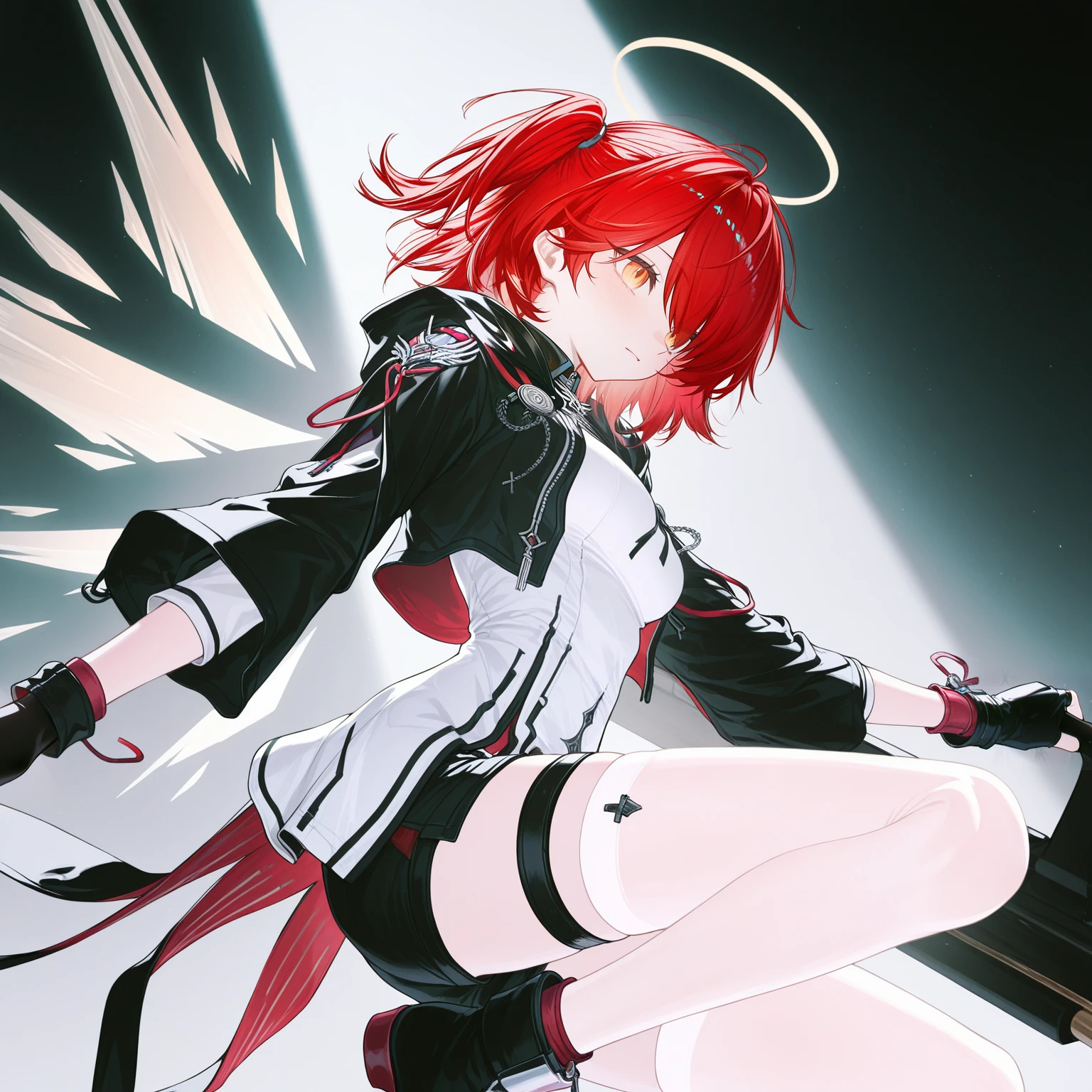 Trigger word:exusiai the new covenant \(arknights\),red hair,red eyes,one side up,