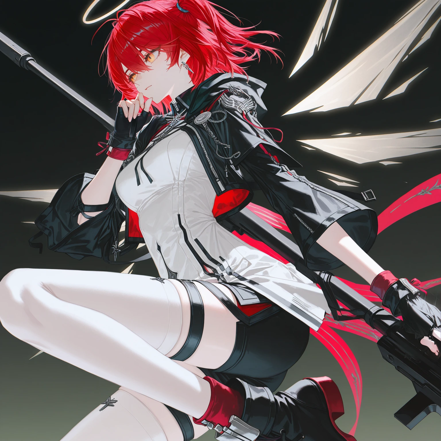 exusiai the new covenant \(arknights\),red hair,yellow eyes,one side up,