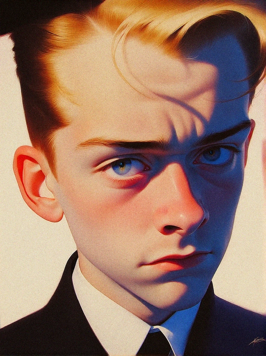 this is a detailed retro oil painting with dynamic, moody shadowing.