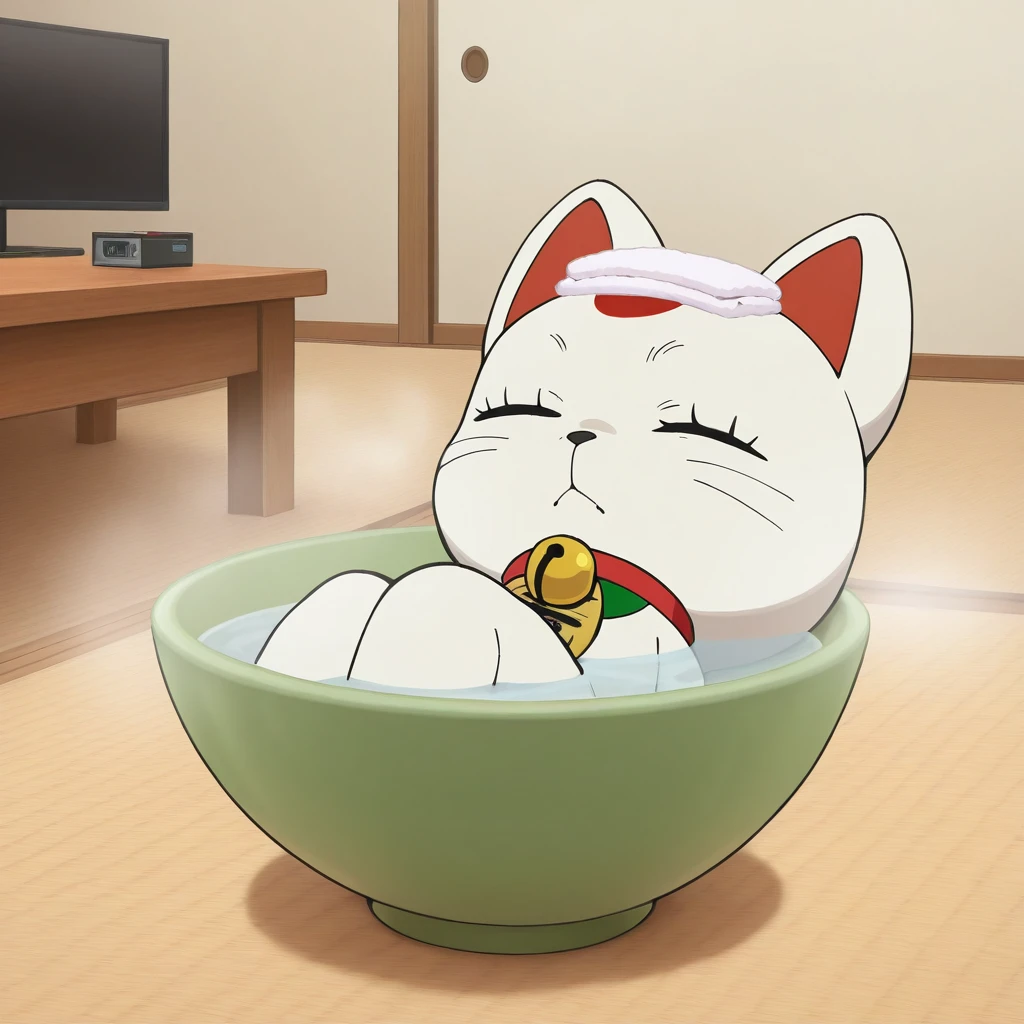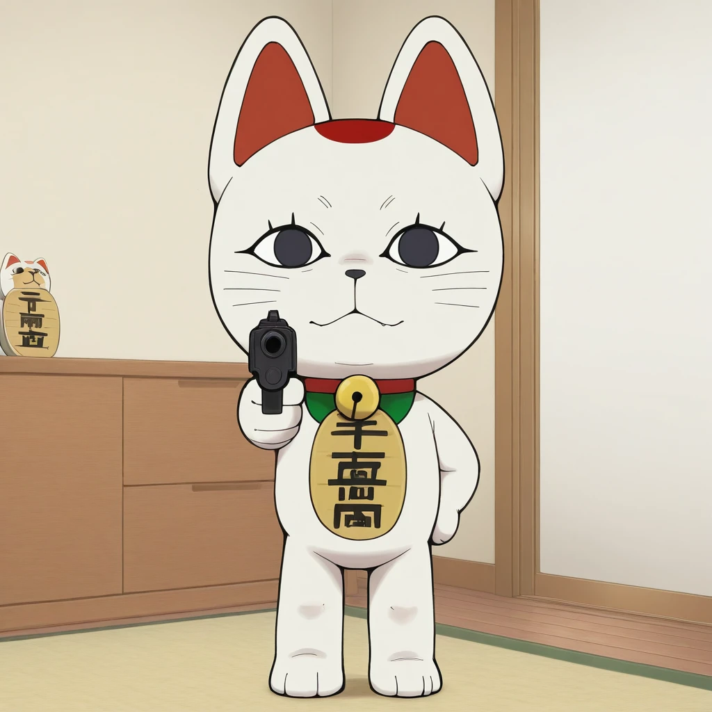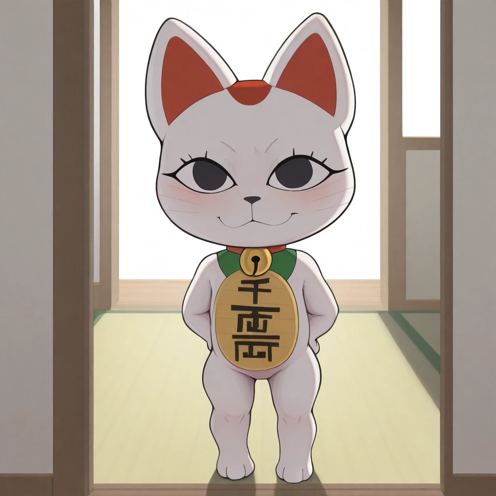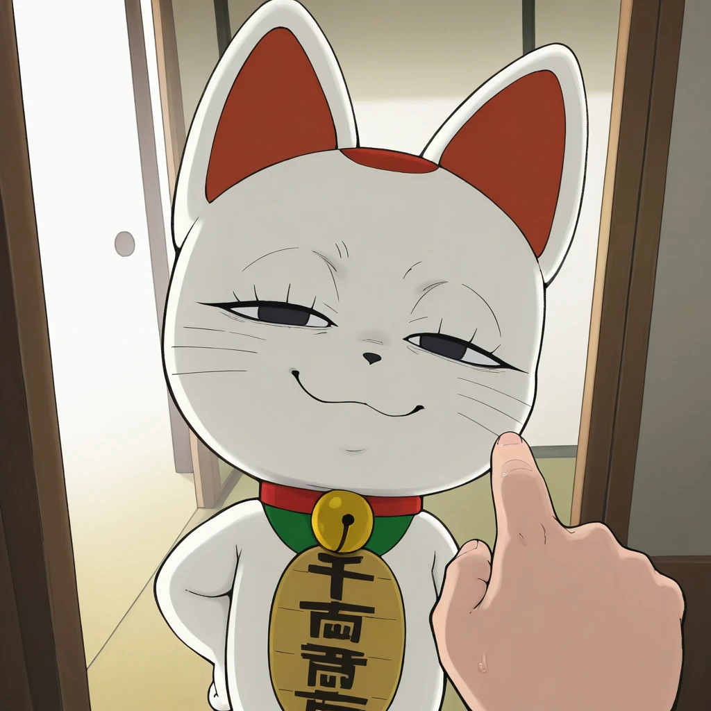 turbogranny, white body, black eyes, red collar,maneki-neko, neck bell, jingle bell, cat, koban_(gold)