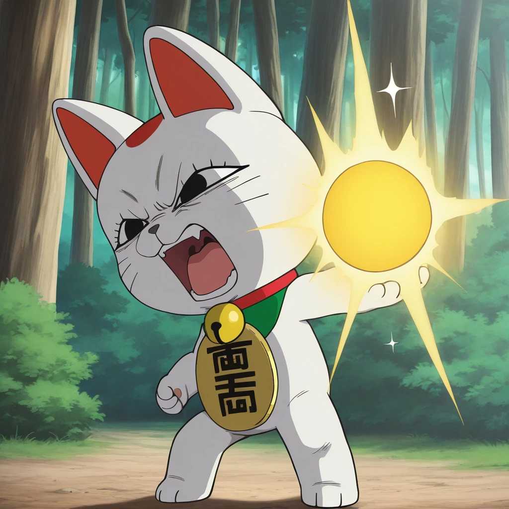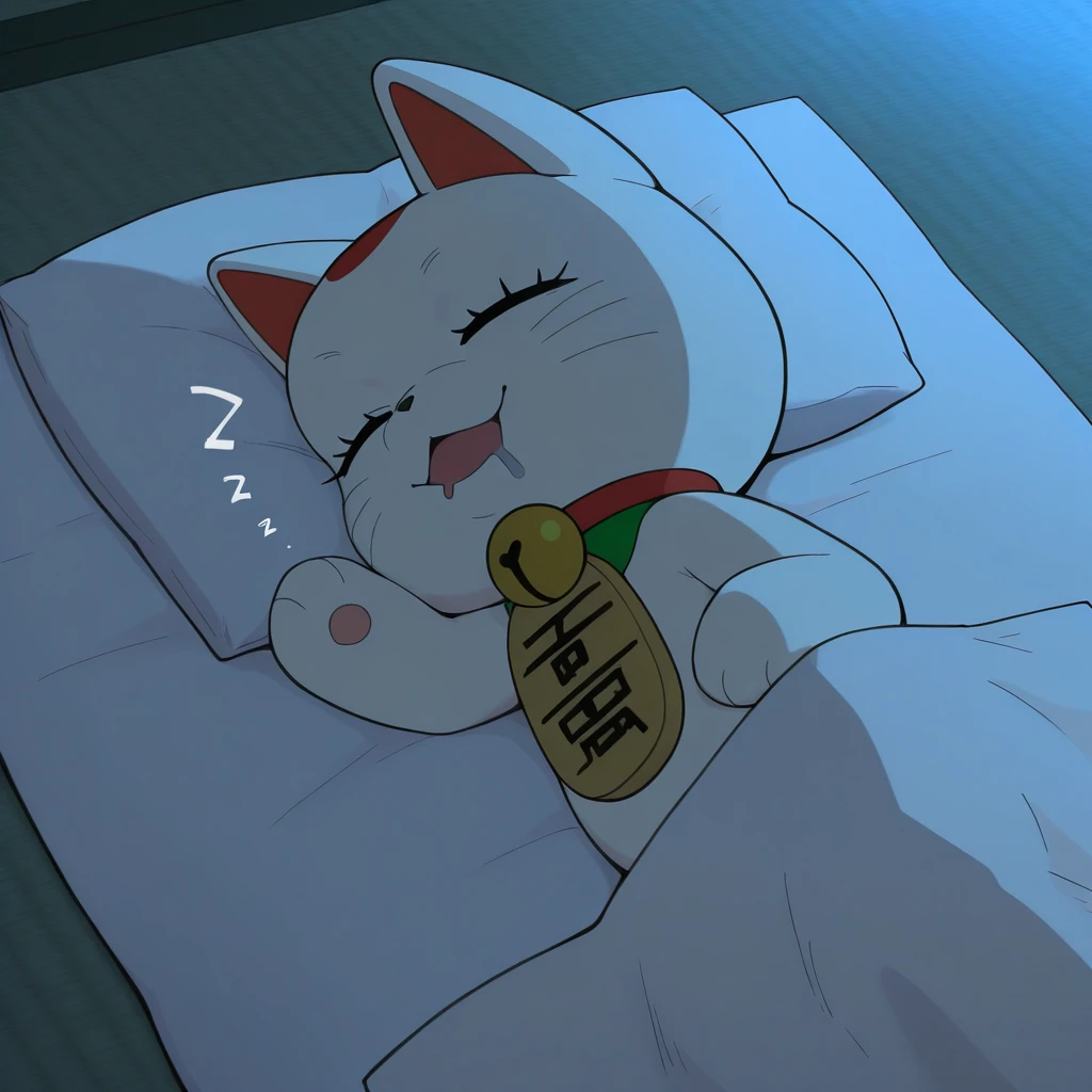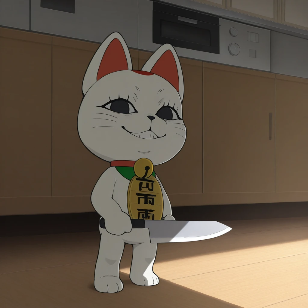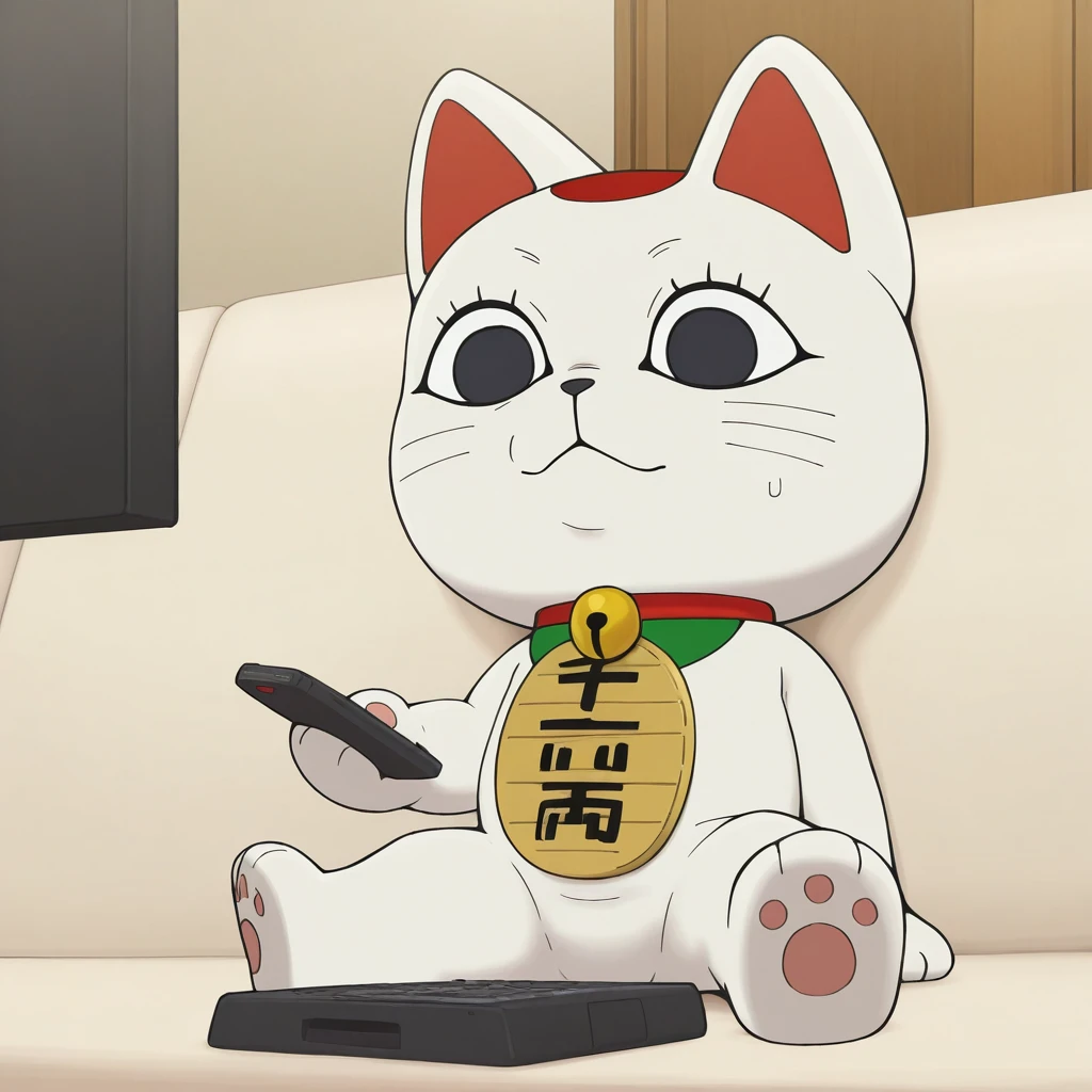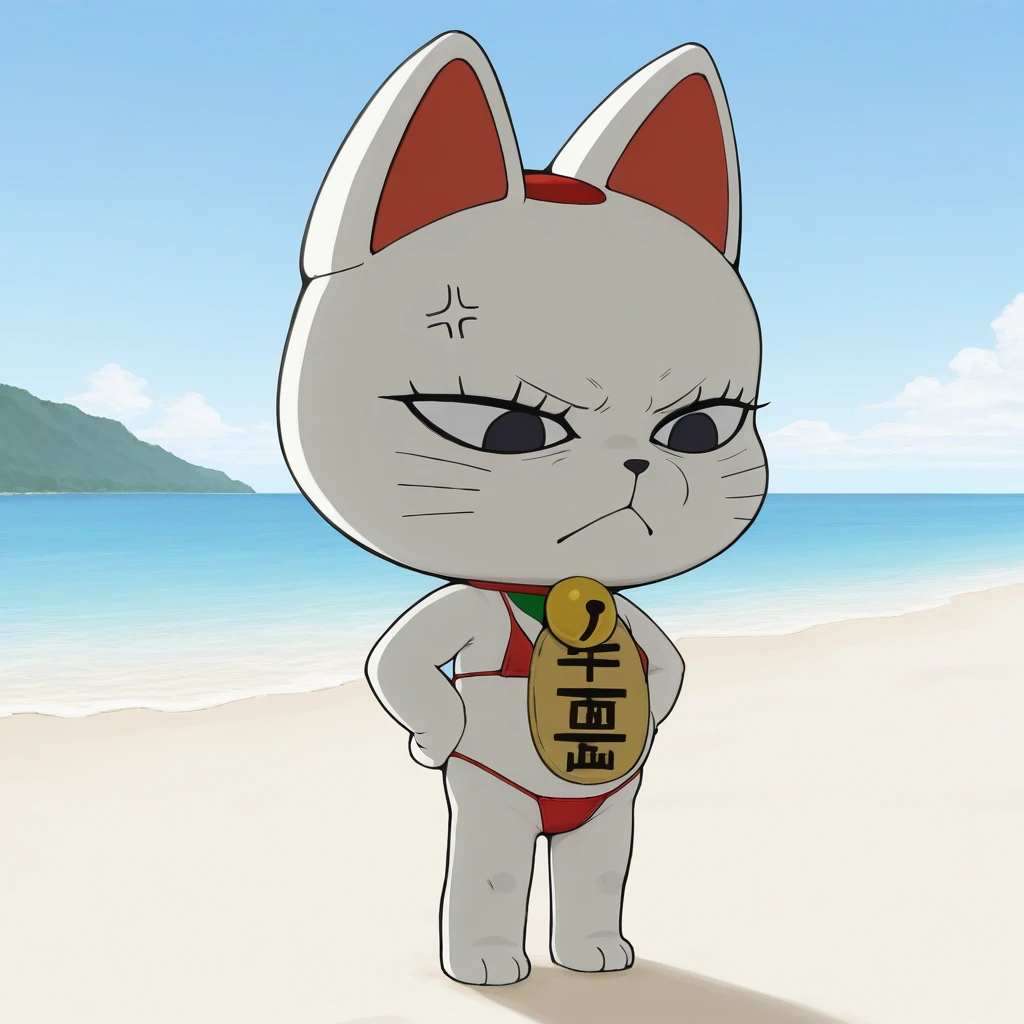 turbogranny, white body, black eyes, red collar,maneki-neko, neck bell, jingle bell, cat, koban_(gold)