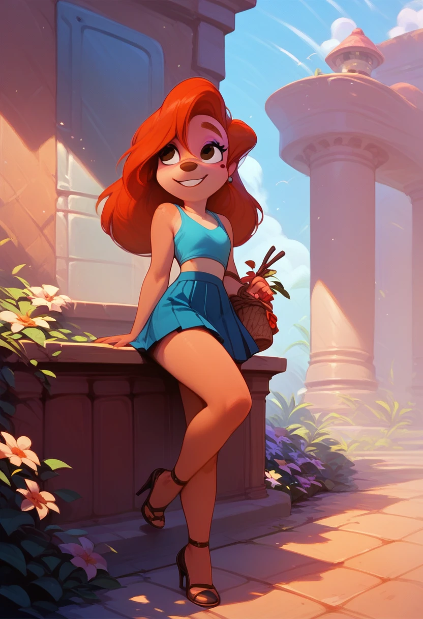 Roxanne Rover from A Goofy Movie / Goof Troop - Stylized. I really like Roxanne but her canon movie design is not 100% to my preferences. Specifically, when it comes to the size of her nose and the size of her mouth as the AI tends to generate it. I prefer these slightly more petite, which is why I'm making my own Roxanne model.