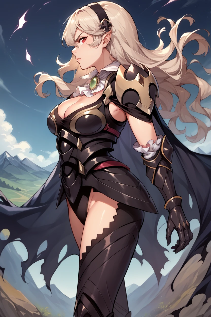 Add "lgdCor, black hairband, cleavage, black armor, shoulder armor, gauntlets, black gloves, torn cape, black leotard, black legwear" for Legendary Corrin.