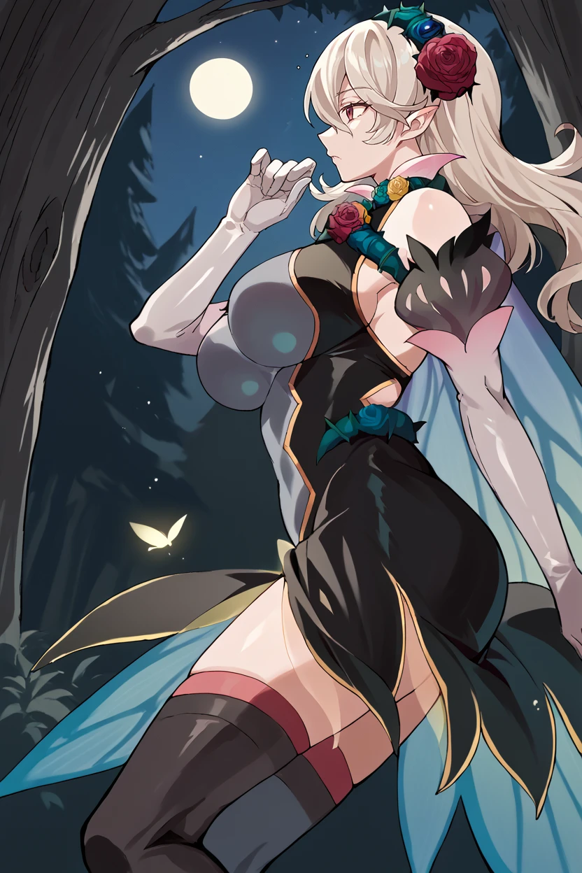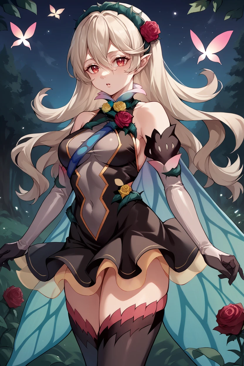 Add "respCor, hair ornament, rose, black dress, bare shoulders, elbow gloves, fairy wings, black thighhighs" for Resplendent Corrin.