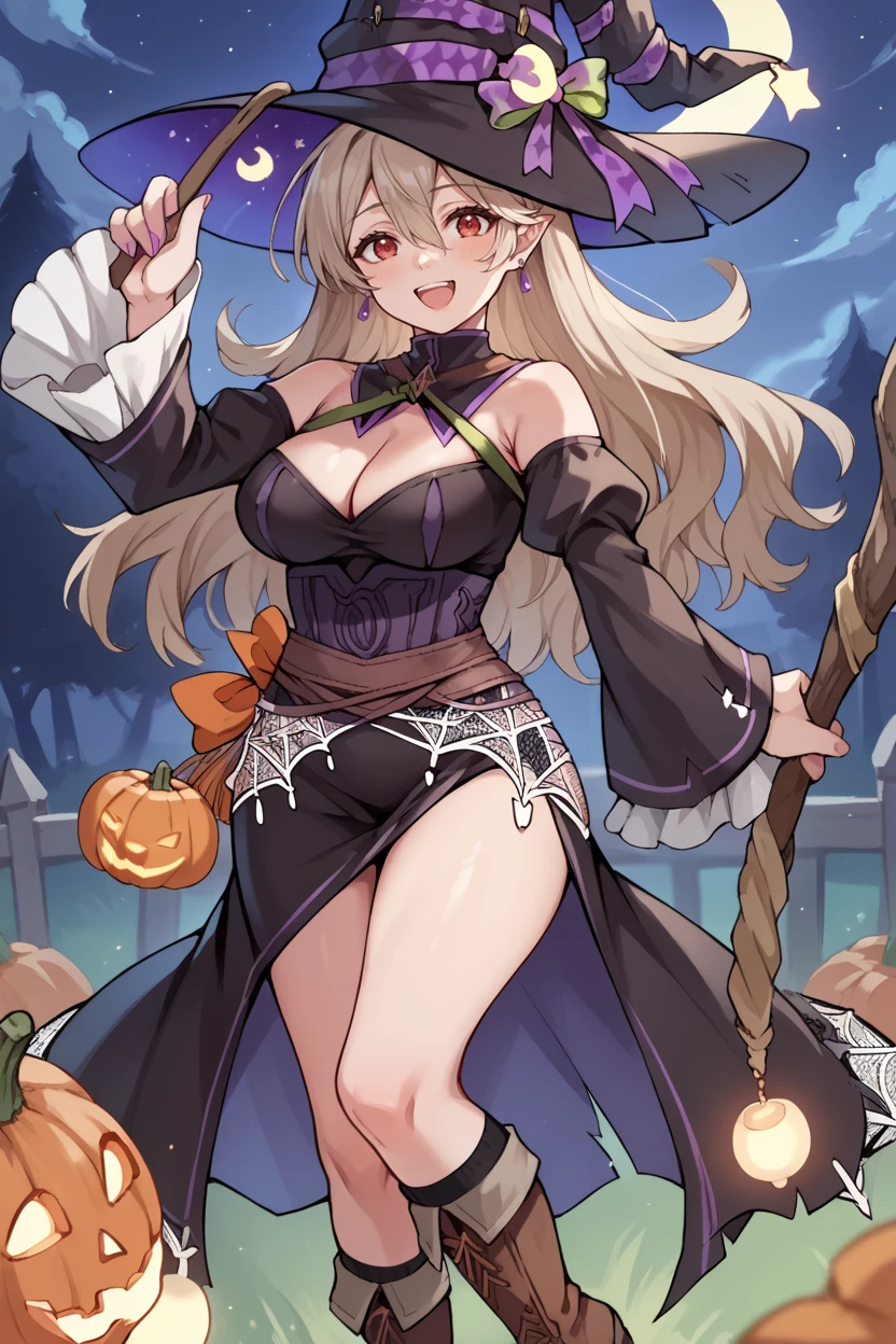 Add "halCor, witch hat, halloween costume, cleavage, detached sleeves, earrings, brown boots " for Halloween Corrin.