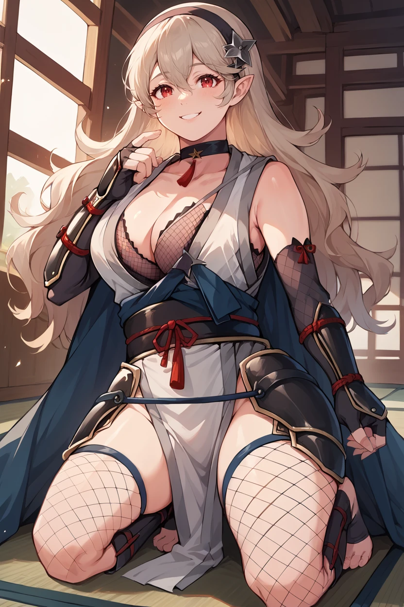 Add "ninCor, ninja, black hairband, choker, japanese clothes, japanese armor, fingerless gloves, bare shoulders, sash, arm guards, fishnets, pelvic curtain, toeless legwear" for Ninja Corrin.