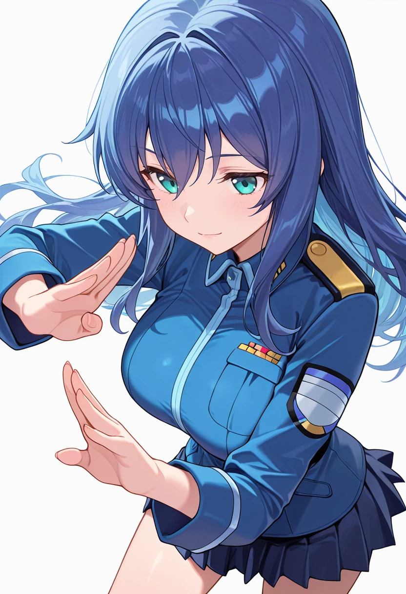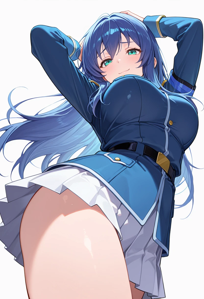 maria_cnr, 1girl, blue hair, long hair, aqua eyes, large breasts,