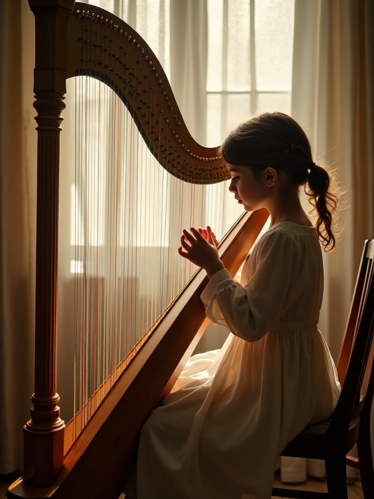 优势:画面优雅静谧,竖琴自带古典艺术氛围,气质温柔治愈。画面氛围感十足,兼具唯美诗意与高级质感,能营造舒缓雅致的视觉意境,提升内容艺术格调,适配文艺、高雅类场景,吸引力强,耐看且共情感突出。